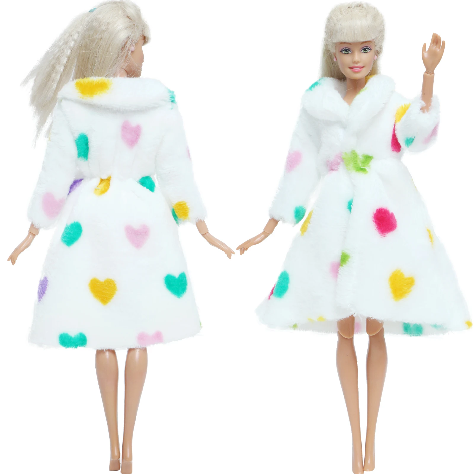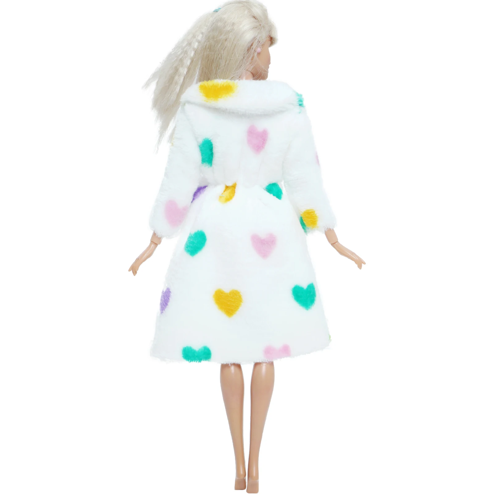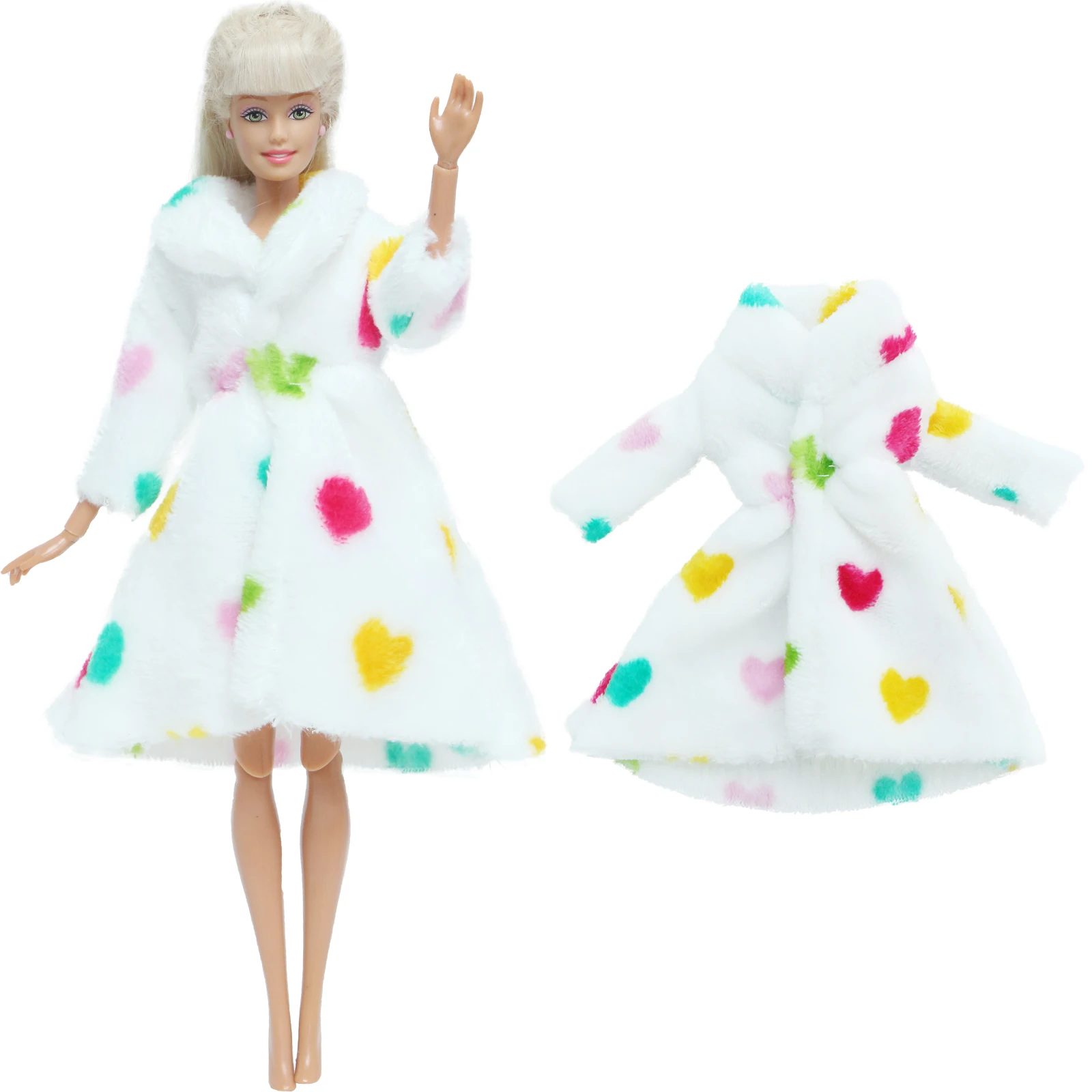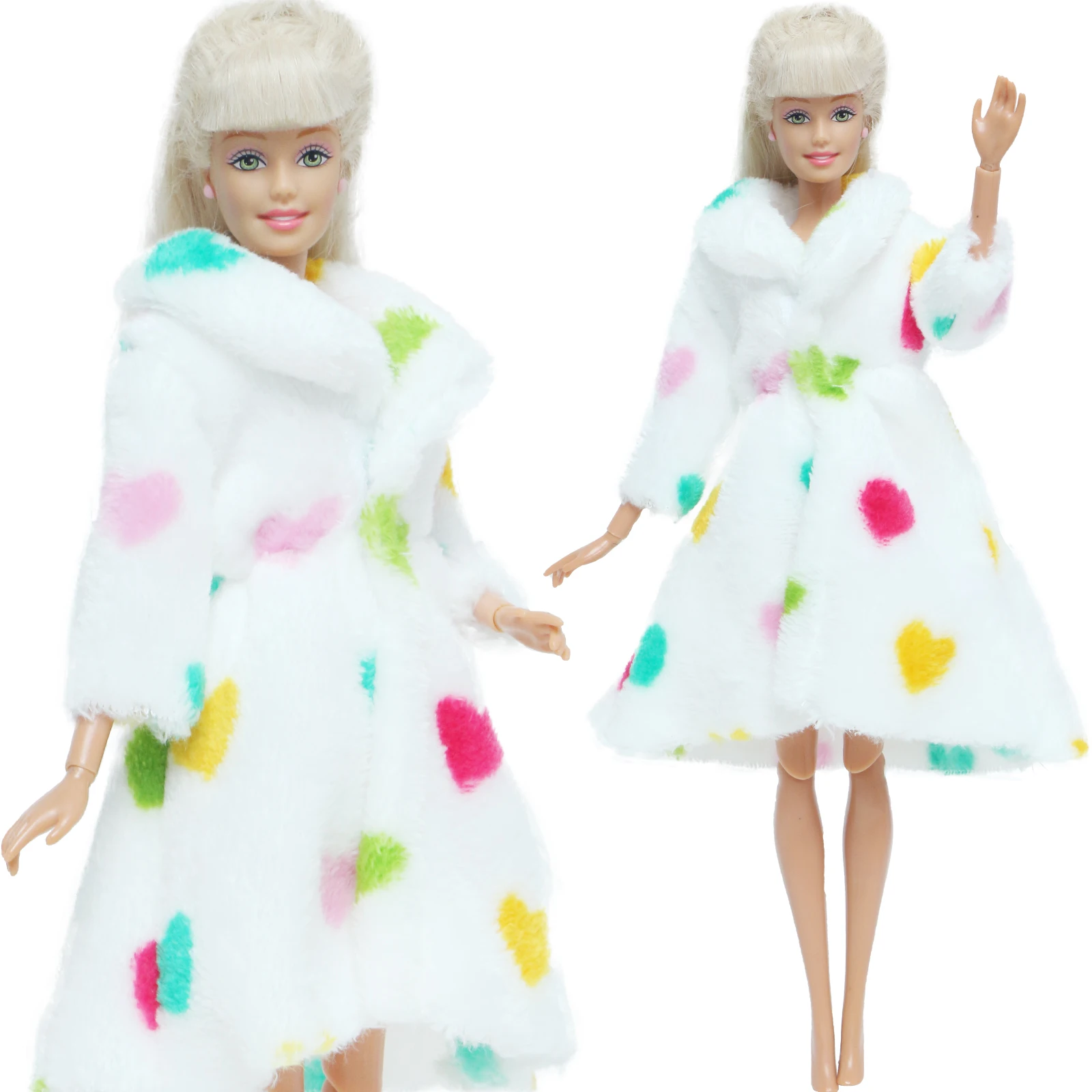 Милая мягкая меховая шуба 1 комплект с сердечками, плюшевые топы, платье, наряд, согревающая одежда, аксессуары для кукольного домика Барби, детская игрушка