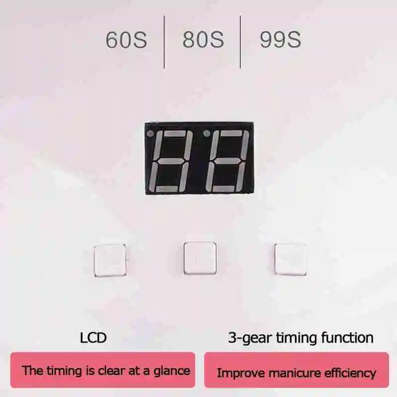 Описание:100% новое качествоЦвет: белыйБусины лампы: 18 УФ/светодиодный бисерМощность сушилки для ногтей: 88 ВтНапряжение: 100-240 ВОсобенности:1. Быстрая Сушка: все гель лак для ногтей можно высушить в течение 30 с2. Великолепный ЖК-экран: вы можете не только освоить время ногтей, но и наслаждаться моментом3. Автоматический запуск: когда палец вставляется в ногтевой светильник, инфракрасный датчик начнет автоматически.4. Легко управлять: Универсальный 60s, 80s, 99s таймер позволяет контролировать время отверждения каждого слоя5. Безопасность: двойной светильник, солнце не повредит ваши глазаПосылка включает в себя:1 шт. 88 Вт Сушилка для ногтей (USB шнур питания не содержит вилку)
