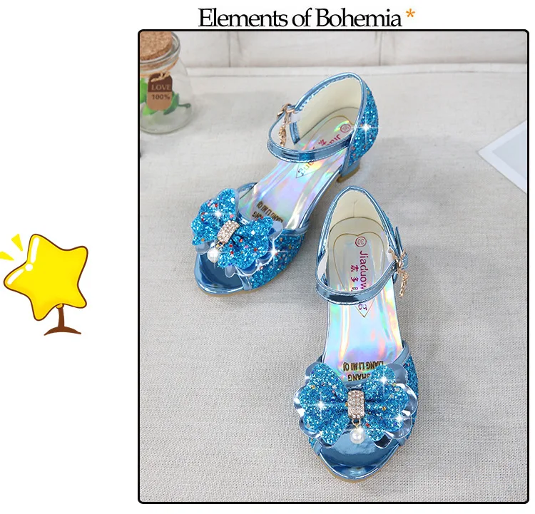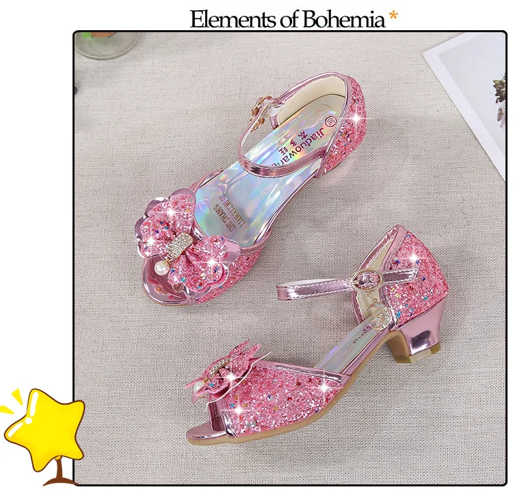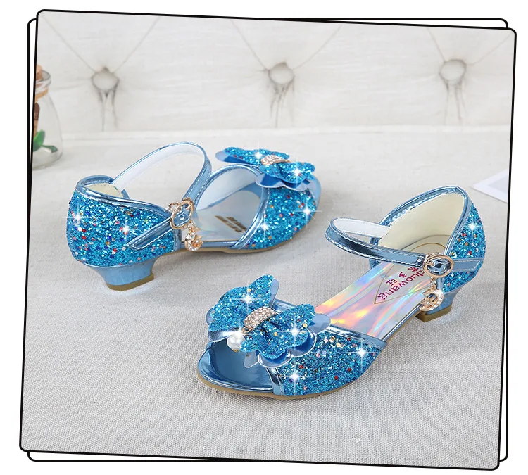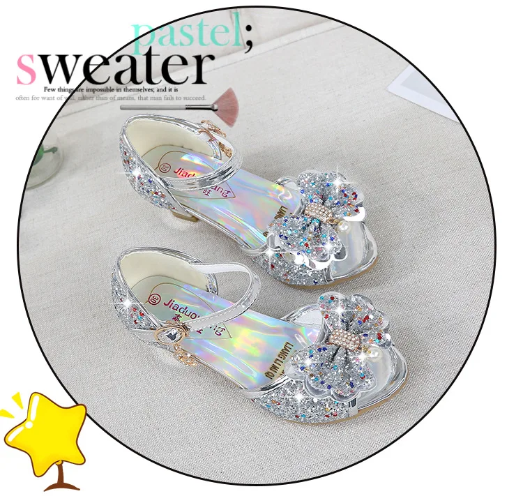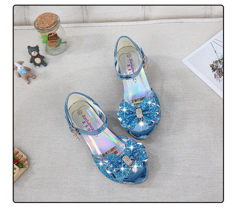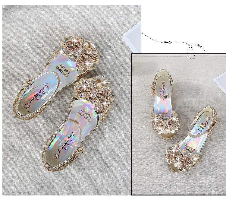 Сандалии для девочек на высоком каблуке, со стразами и бантом