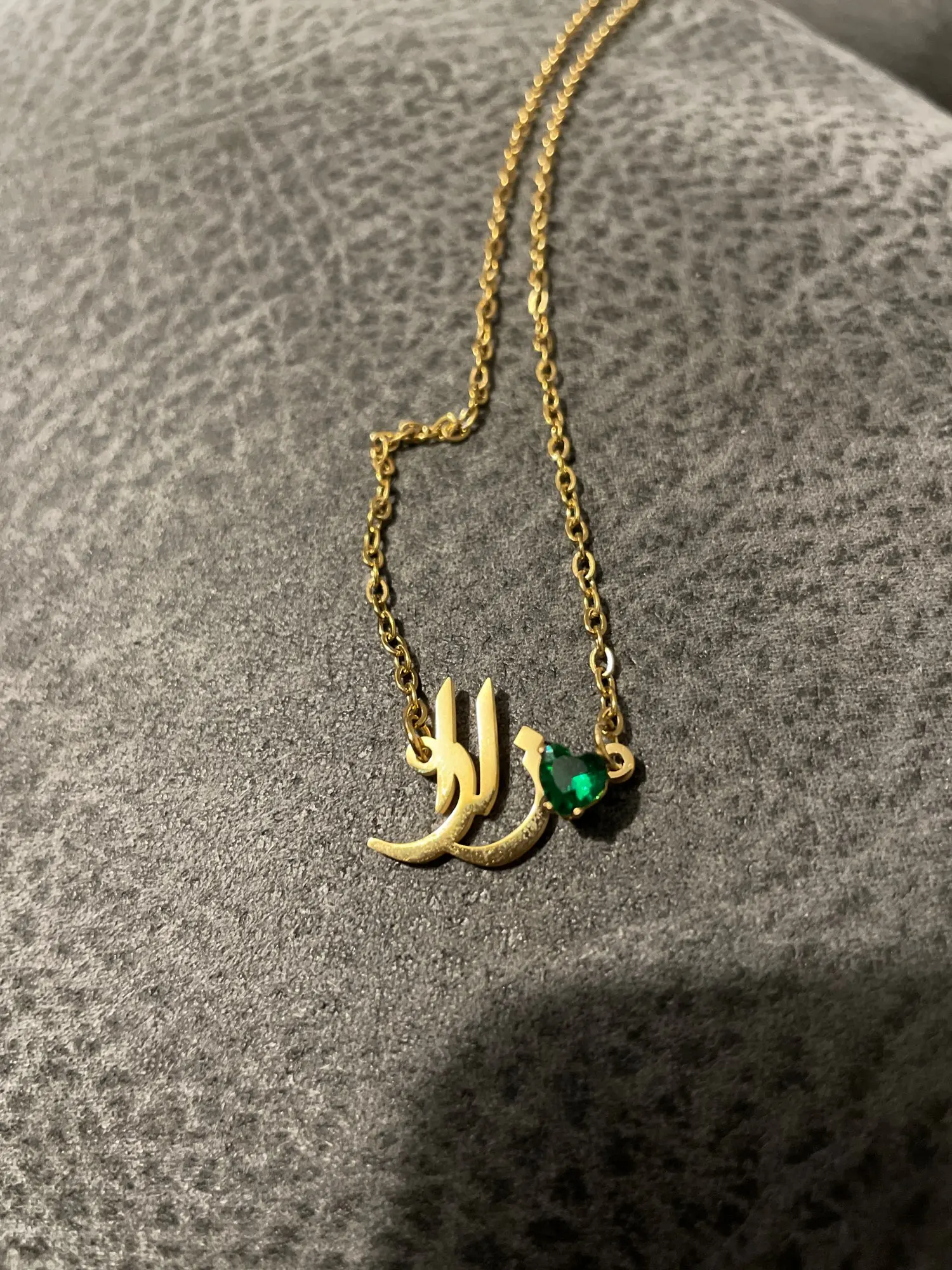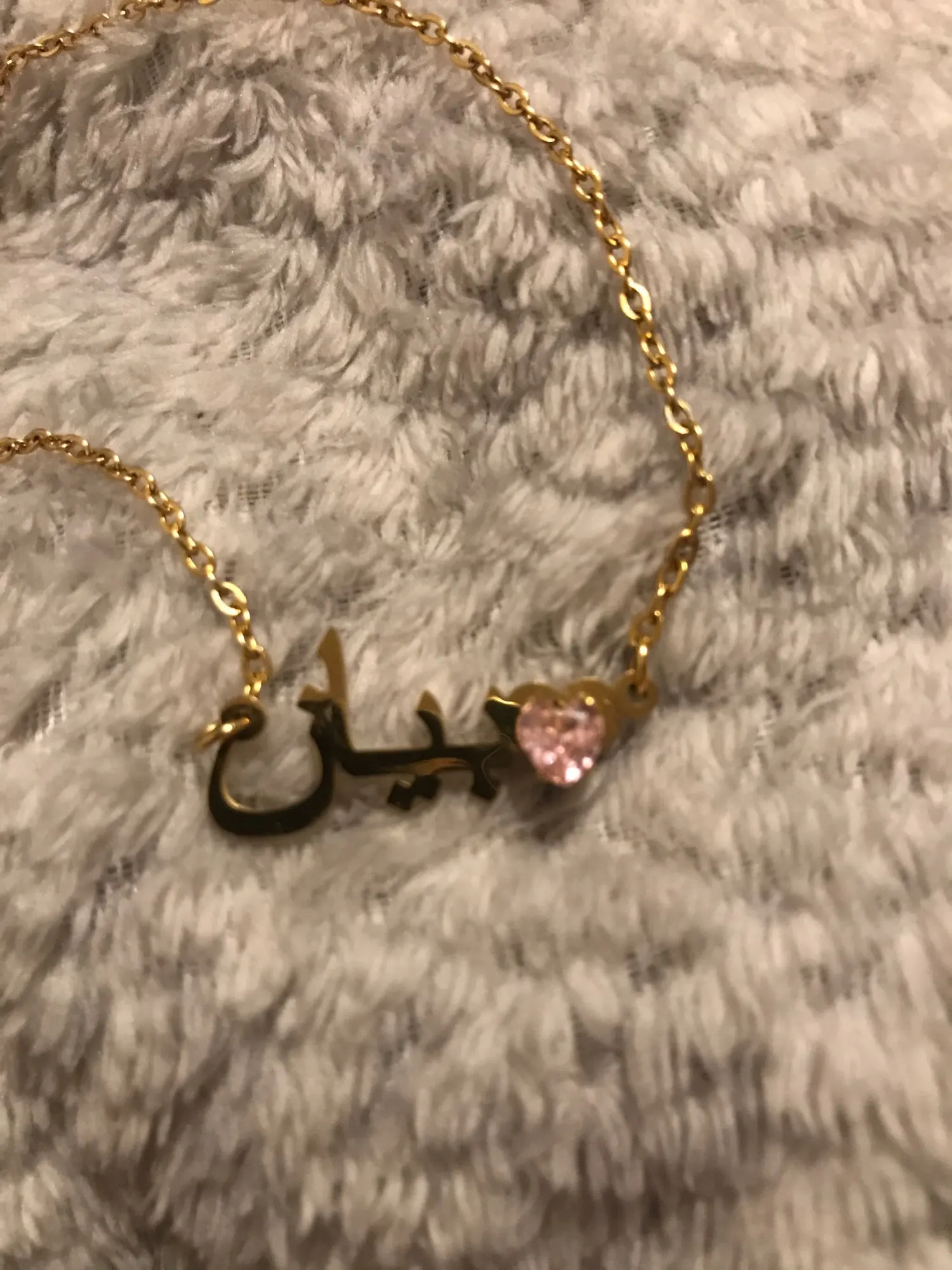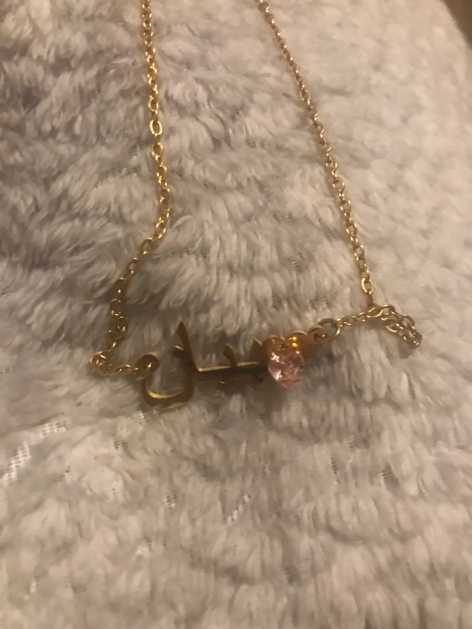 Ожерелье отличного качества, еще не потускнело, не сгибается, сердце не отваливается, цепочка также хорошего качества. Я получил несколько комплиментов! Это красиво, и продавец был очень быстрый с ответом, занял около 3 недель, чтобы прибыть. Вы должны отправить им свое имя на арабском языке (или они будут переводить английское имя на арабском языке на переводчика) и ваш месяц рождения. Определенно рекомендую для себя и подарок!