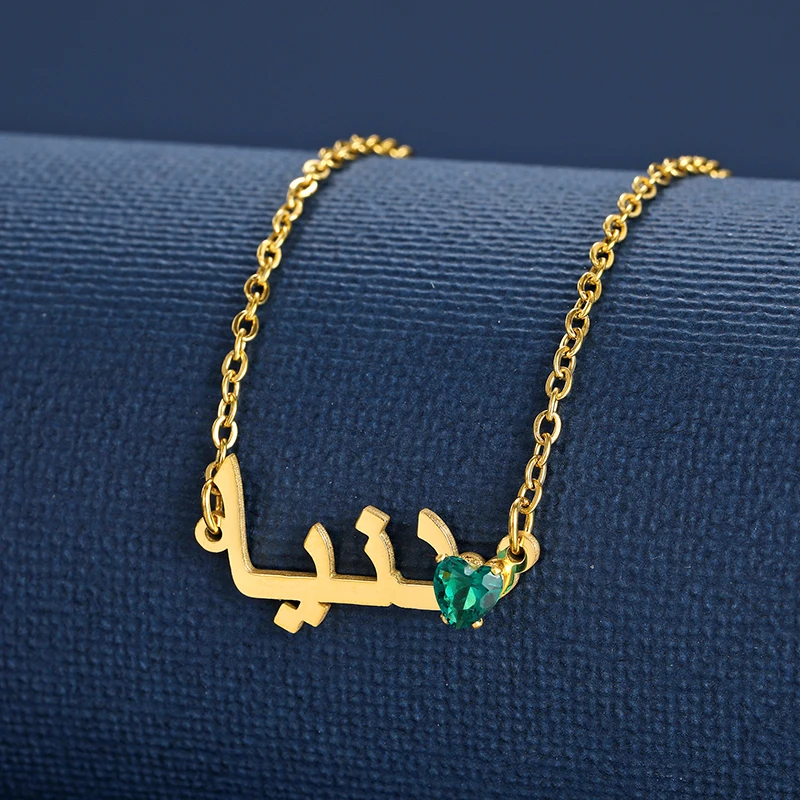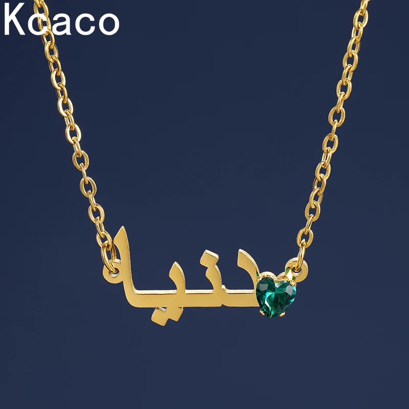 Персонализированное ожерелье с арабским именем и сердцем, подвеска из нержавеющей стали с арабскими буквами в форме сердца, подарок для женщины на день рождения с цирконием