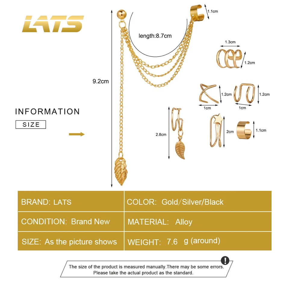 7 шт., модные серьги-клипсы с золотыми листьями звезд для женщин, простые поддельные серьги-каффы, клипсы, аксессуары