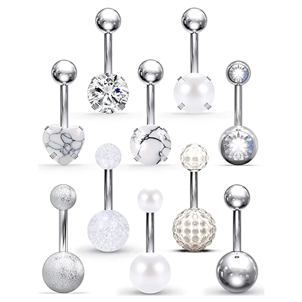 Кольца для пупка 14G из нержавеющей стали, серьги для пупка с фианитом, кольцо для пупка, штанга, ювелирные изделия для пирсинга тела