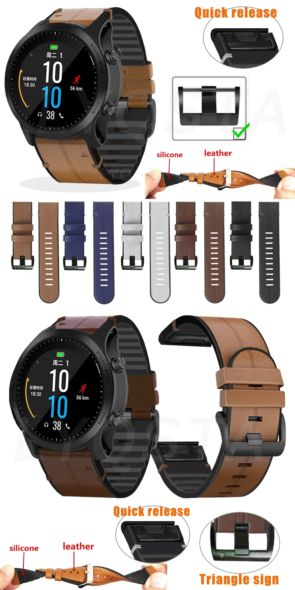 Ремешок из силикагеля и кожи для наручных часов, простой быстросъемный умный Браслет для Garmin Fenix 6X 6 Pro 5X 5 Plus 3HR, 26 мм 22 мм