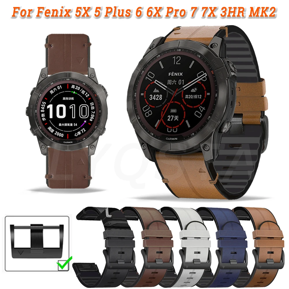 6mm Silicagel+Leather Watchband Strap for Garmin Fenix 6X 6 Pro 5X 5 Plus 3HR 22mm Band Easy Fit Quick Release Smart wriststrap