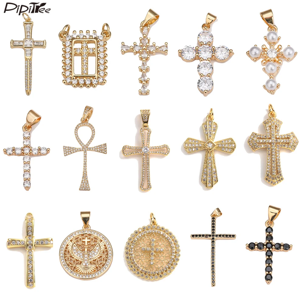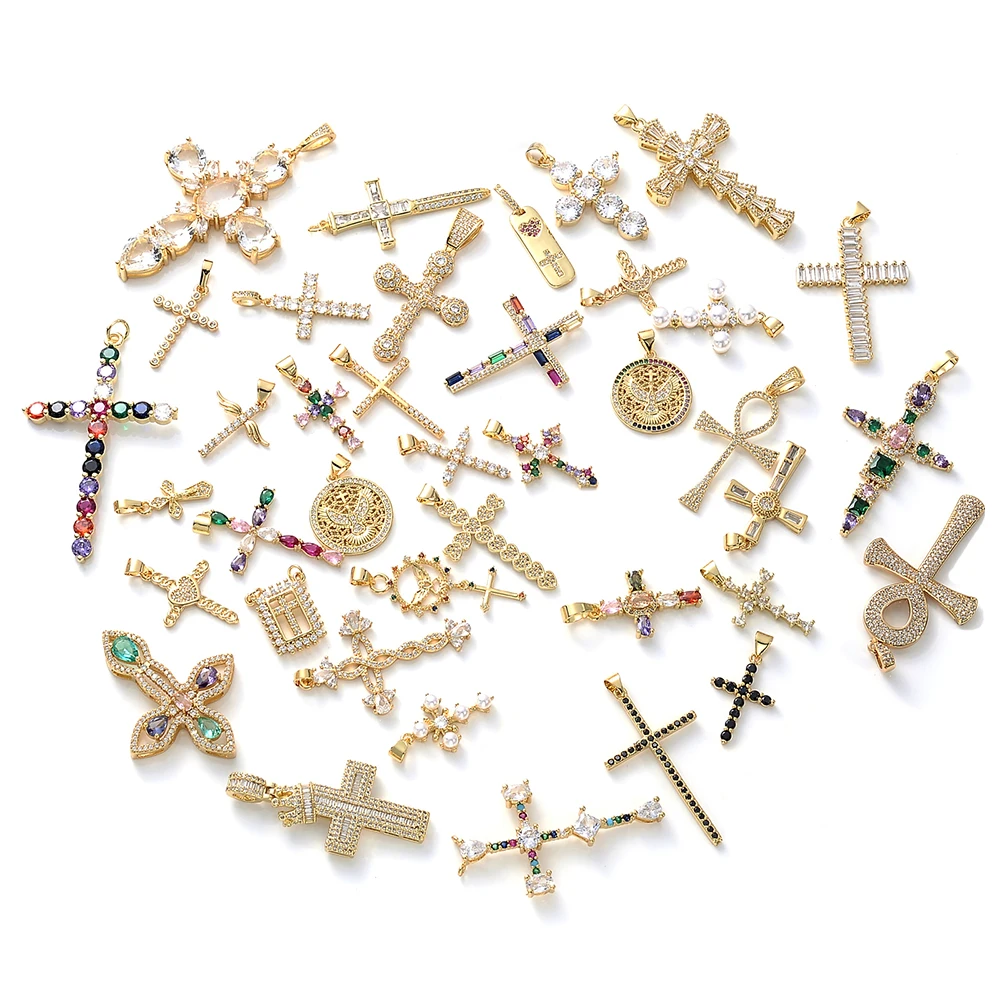 Название: модные кулоны с кубическим цирконием, религиозный крест, медные золотые подвески DIY, подвески для ожерелья, ювелирных изделий
