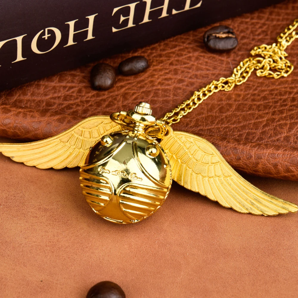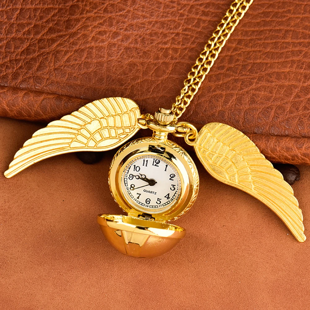 Ожерелье карманные часы Топ Роскошный Золотой шар карманные часы крошечные крылья ожерелье кулон часы подарки для детей сувенирные подарки