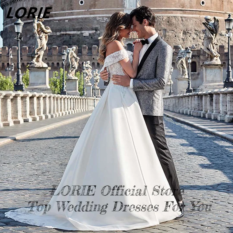 LORIE изысканные кружевные свадебные платья с открытыми плечами с к...