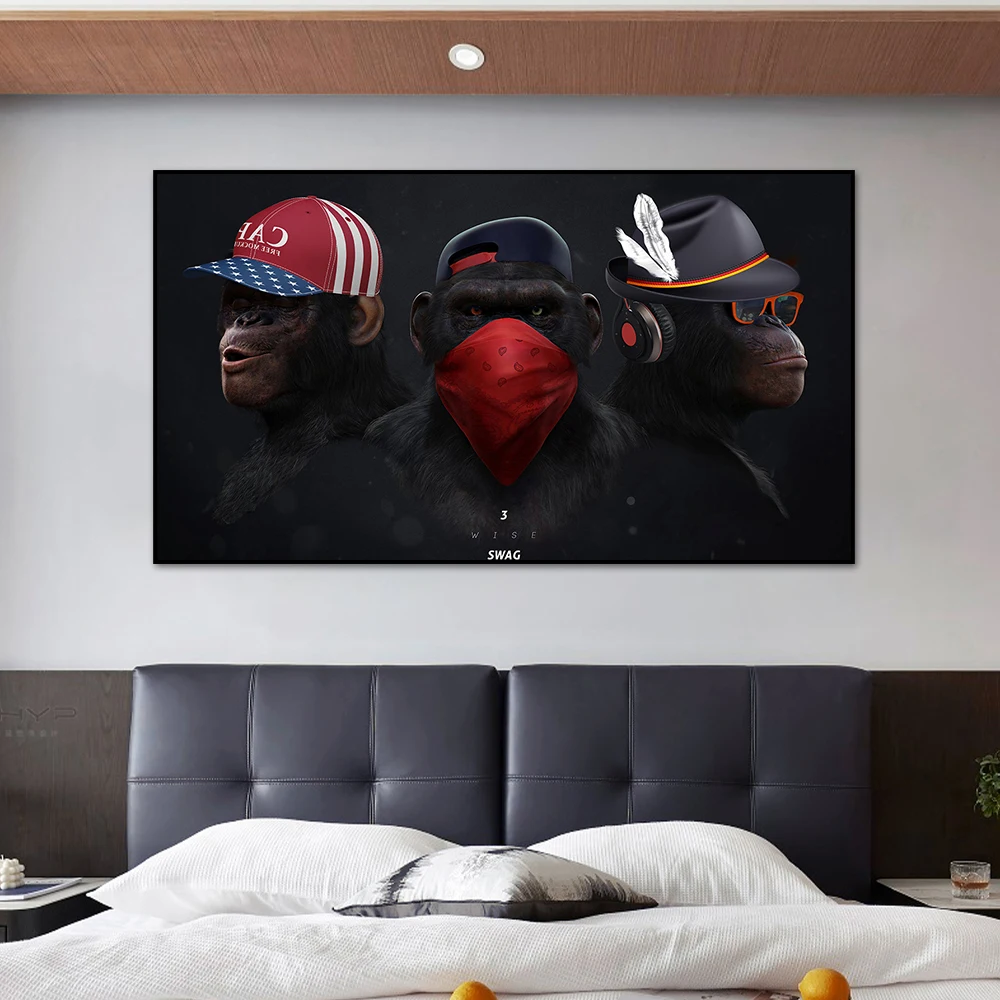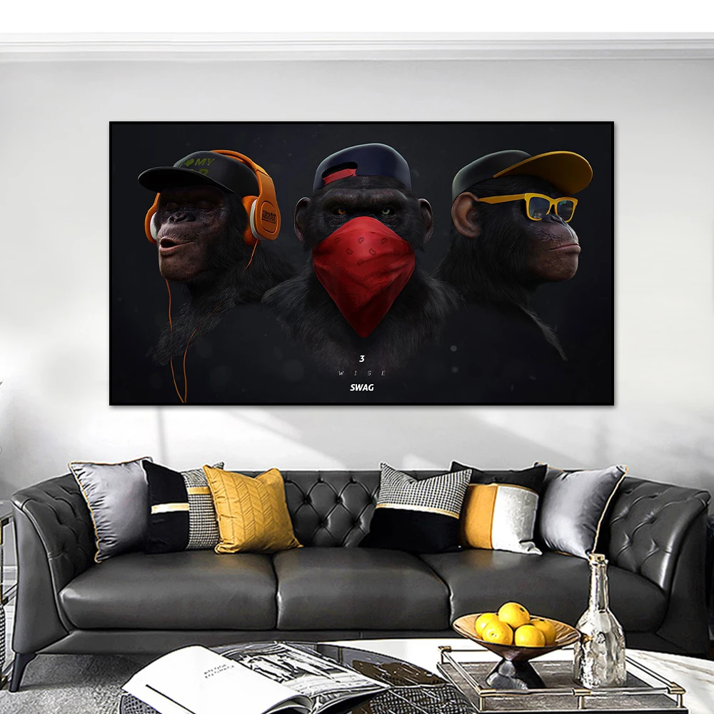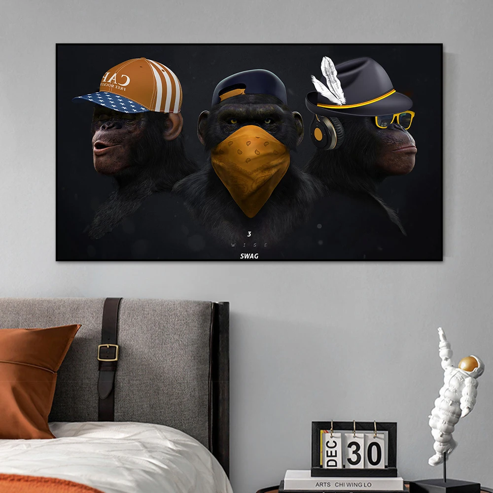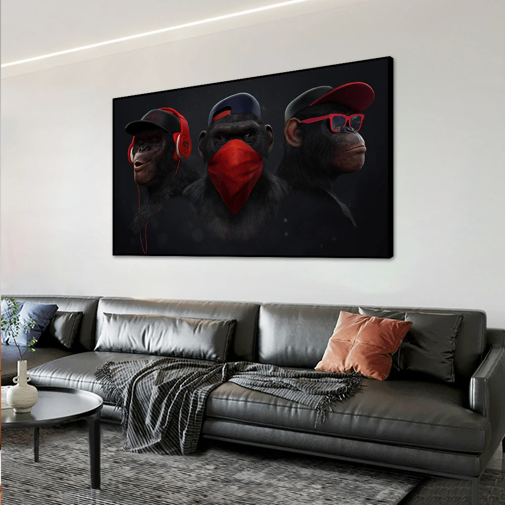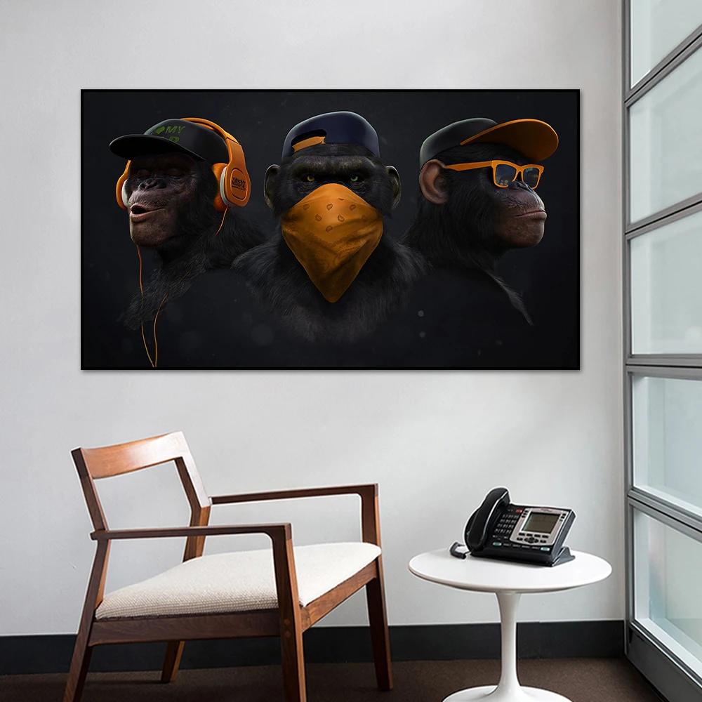 Наушники очки Горилла обезьяна Забавный плакат Художественная печать Современная Картина на холсте поп модная Настенная картина украшение для гостиной
