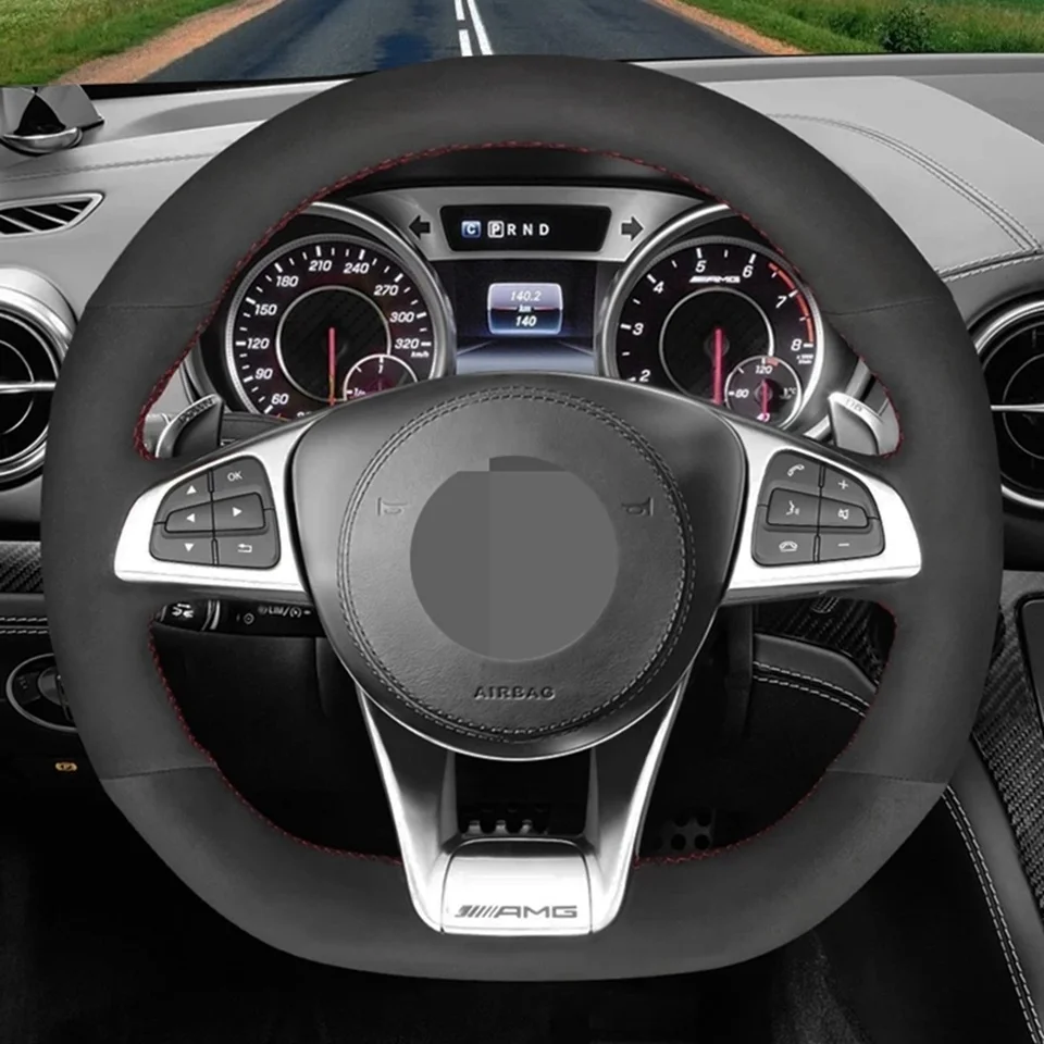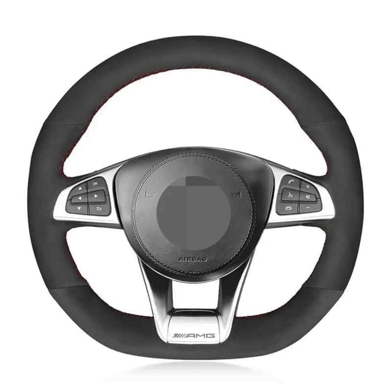 Чехол рулевого колеса автомобиля черная замша для Mercedes-Benz A45 AMG W205 C43 C63S AMG CLA45 CLS63 AMG GLC 43 63 AMG автомобильные аксессуары