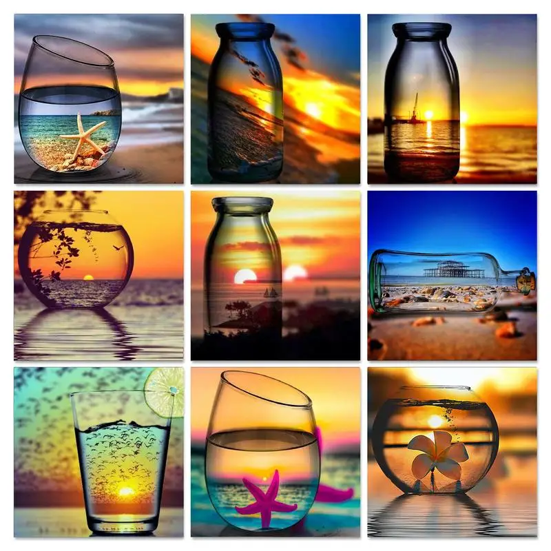 Картина по номерам GATYZTORY, бутылка, пейзаж, ручная роспись, холст, Современная Раскраска по номерам, пейзаж, самодельные украшения для дома, сделай сам