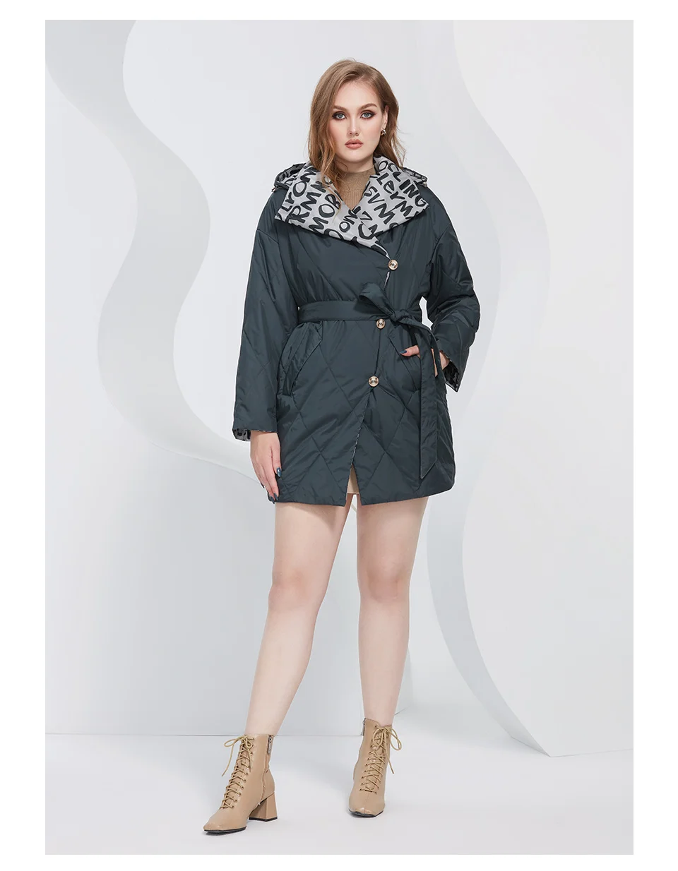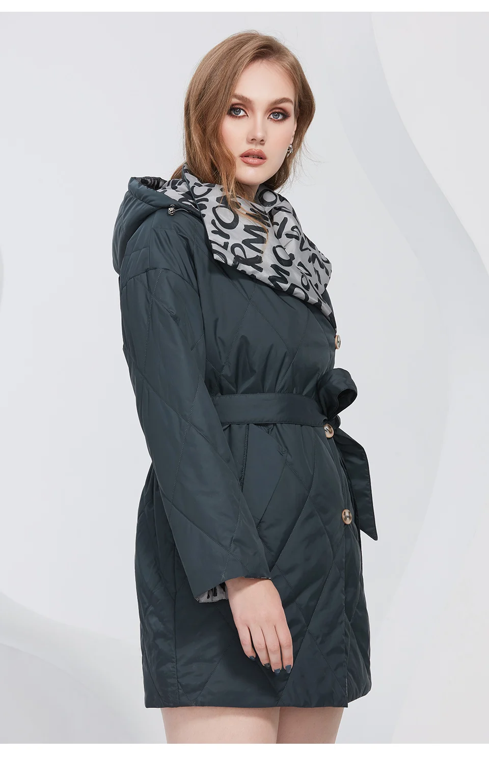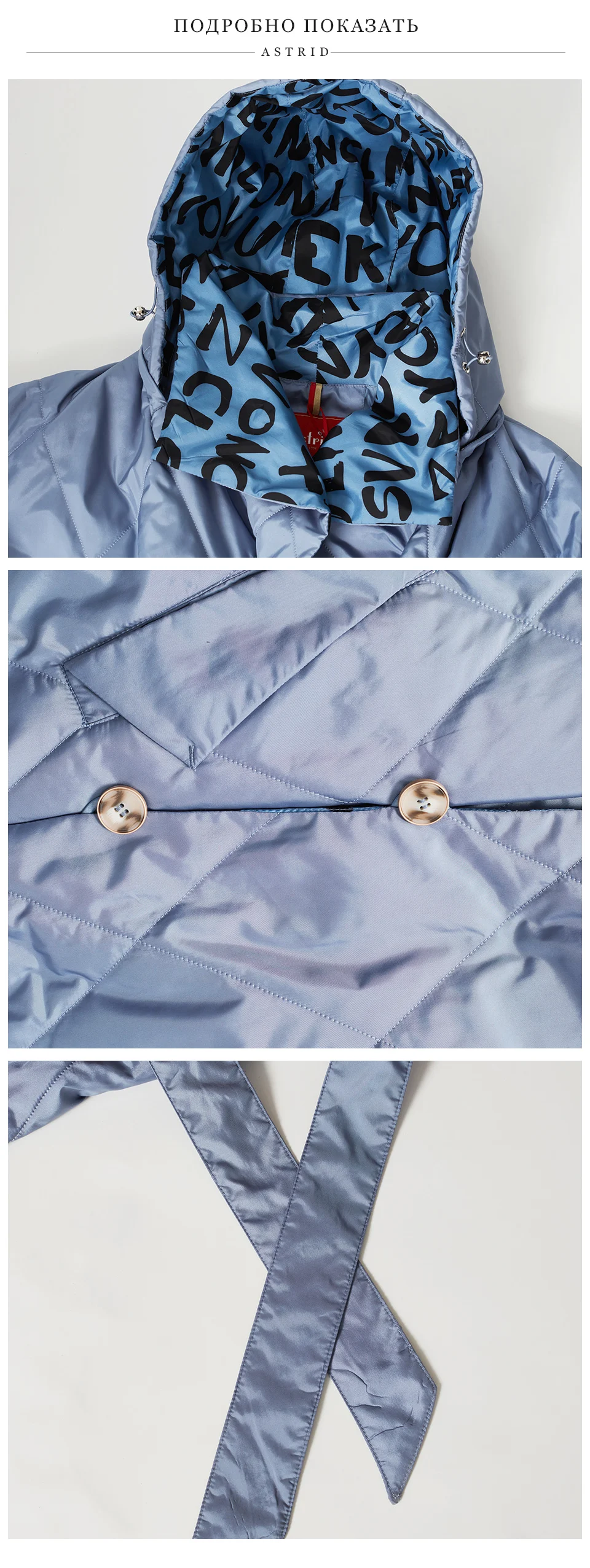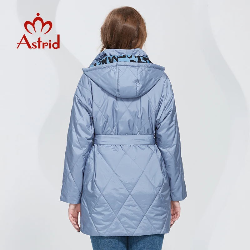 Astrid New 2022 Весенние пальто Женские парки Oversize Длинные теплые с поясом и буквенным принтом с капюшоном и подкладкой Женская куртка верхняя одежда AM-20079