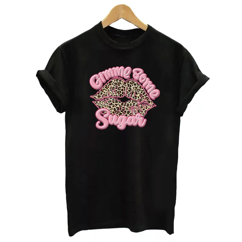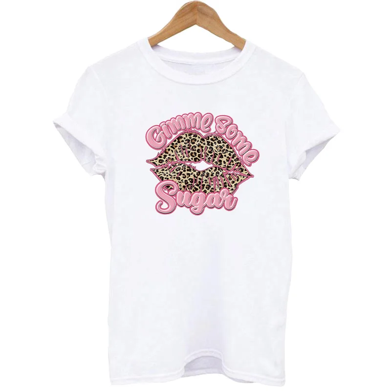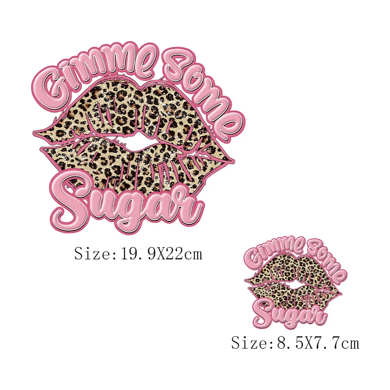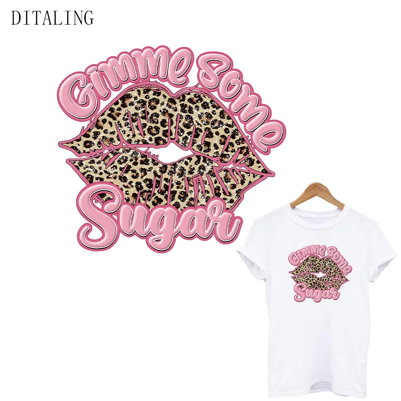 Leopard Print Lips Patch For Clothing Pink Girl DIY A-Level Washable T-Shirt Stickers Gimme Some Sugar Iron On Decals On Clothes