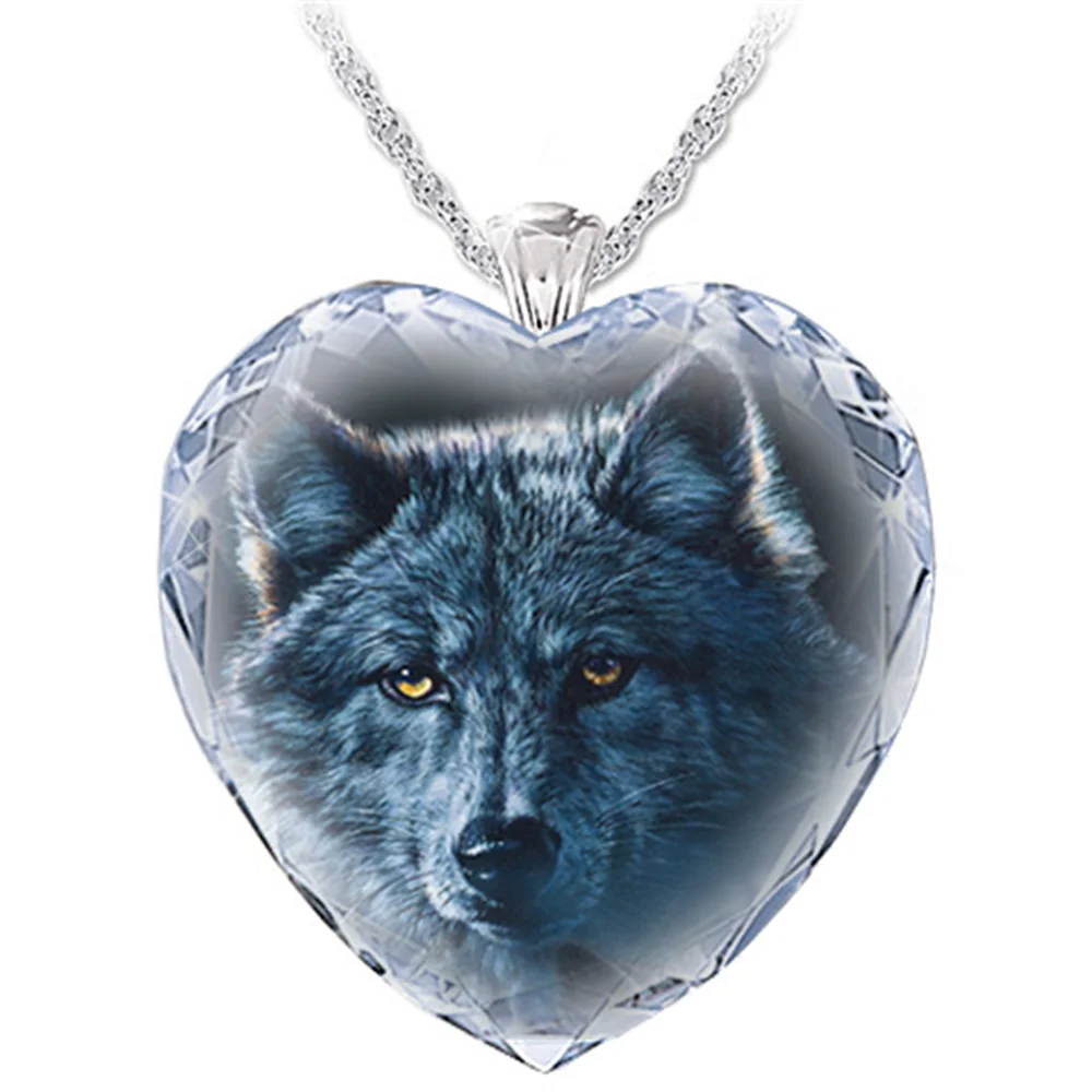 Красивое ожерелье с подвеской из кристаллов в форме сердца черного волка, изысканная голова волка, аксессуары, ювелирные изделия, модные аксессуары для вечеринок, мужественное ожерелье веры