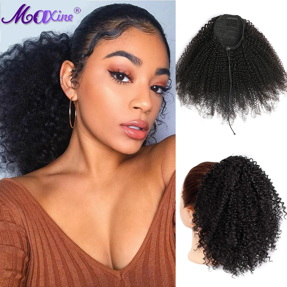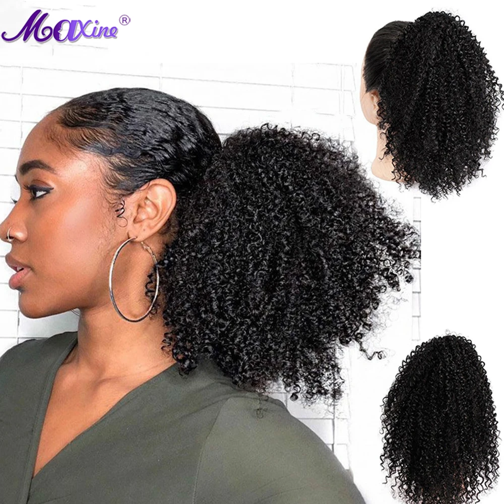 Maxine афро кудрявые накладные человеческие волосы на шнурке для конского хвоста накладной хвост длинный конский хвост на заколке для женщин