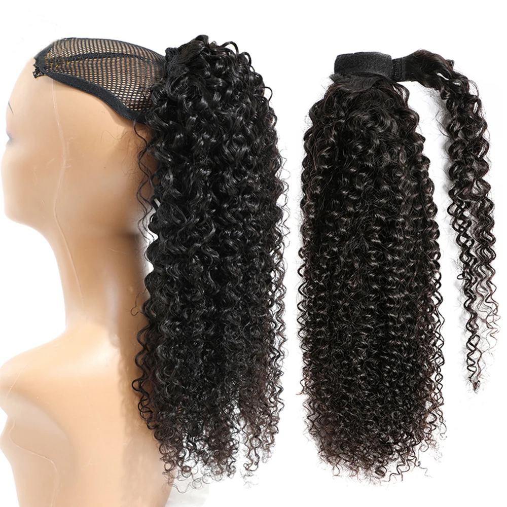 Afro Kinky Curly Drawstring Ponytail Human Hair Extension Wrap Around Ponytail 28 30 Inch Long Pony Tail Clip in Hairpiece For Black Women
