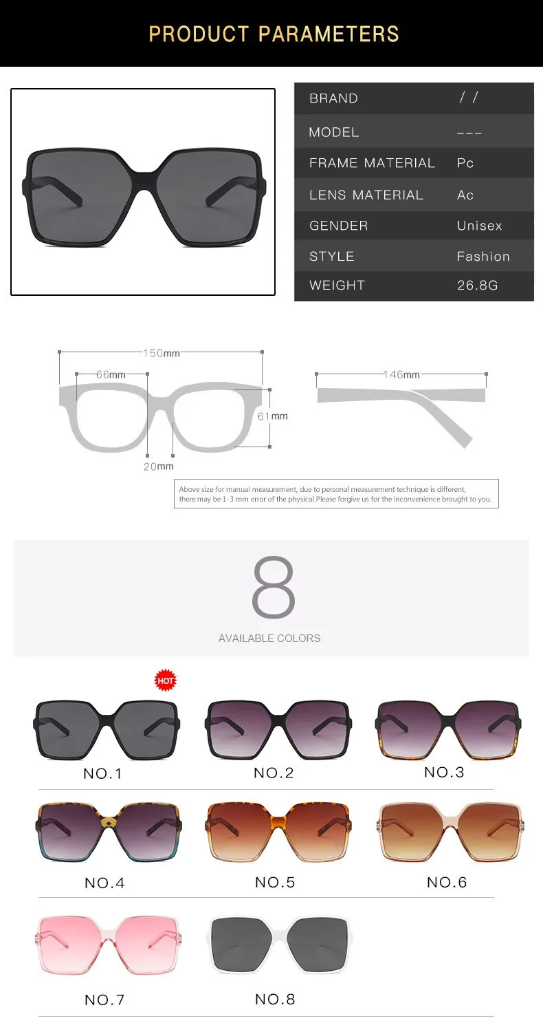 2019 Модные женские большие солнцезащитные очки, градиентные пласти...