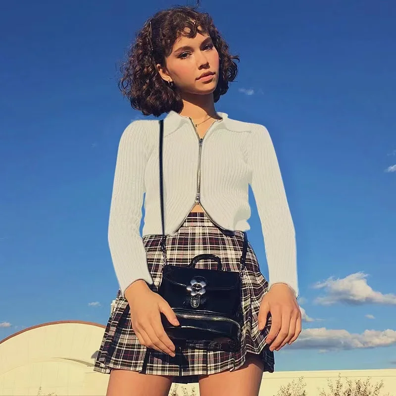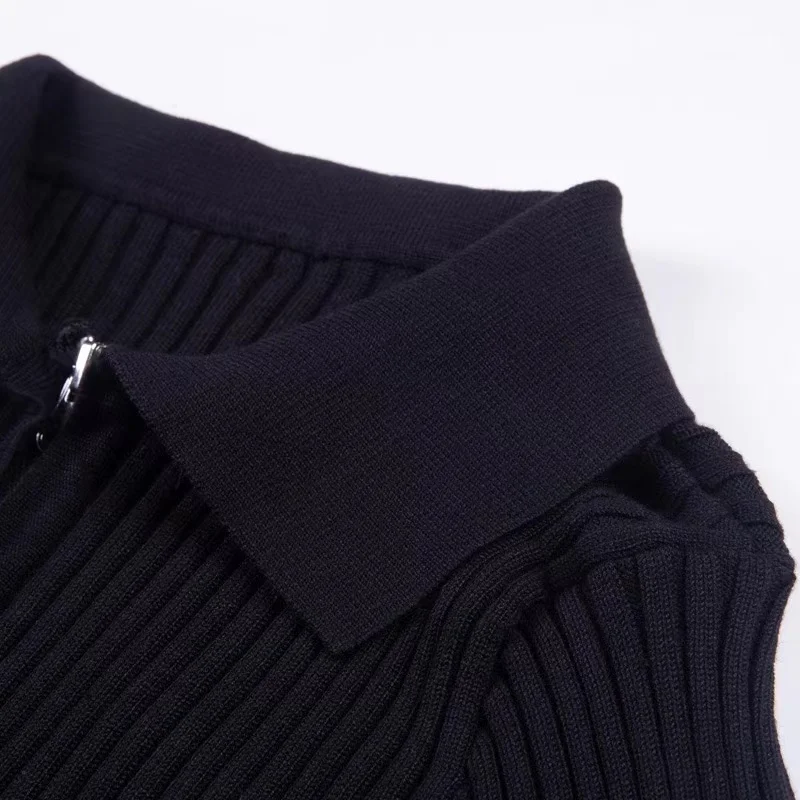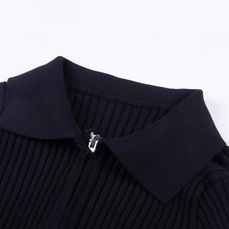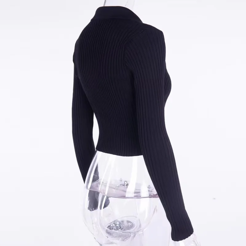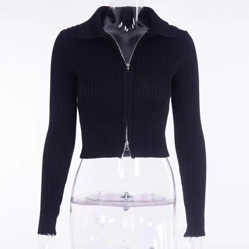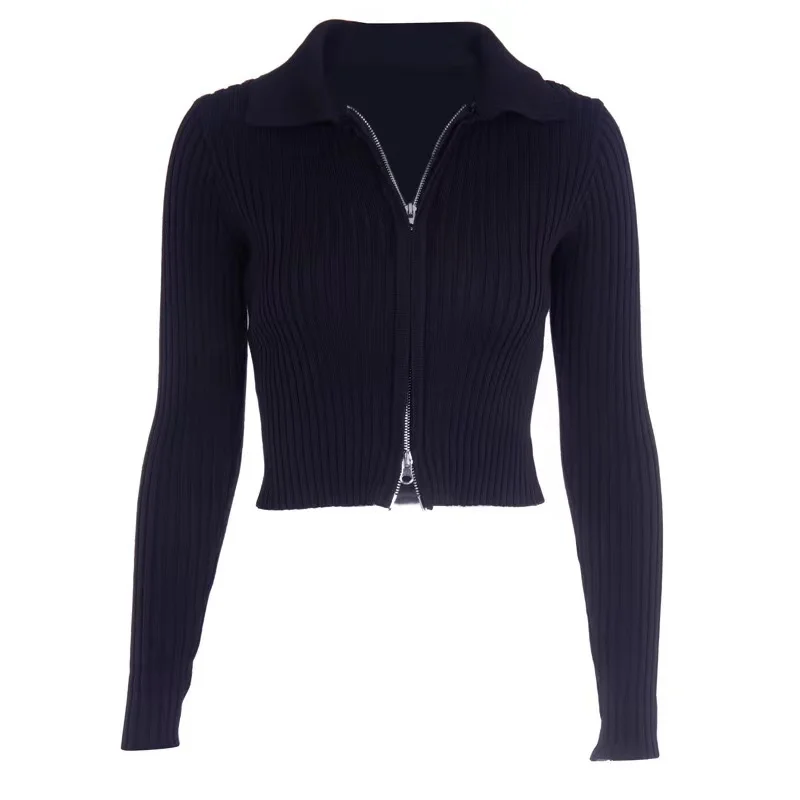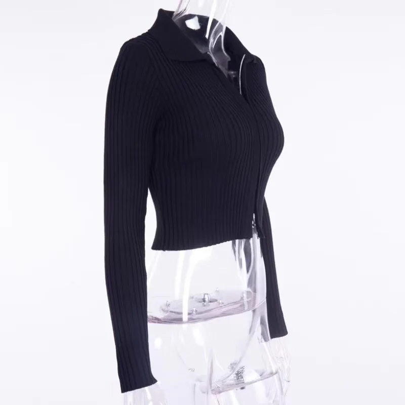 Женский весенне-осенний черный свитер в рубчик на молнии, короткий ...