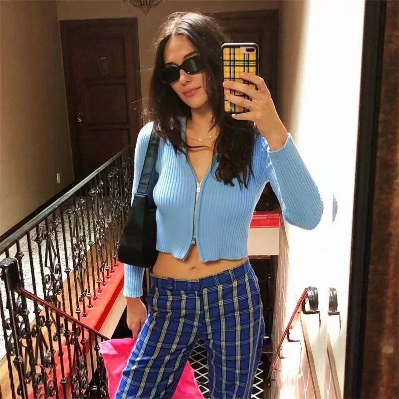 Облегающий вязаный Топ Y2K, Женский Укороченный кардиган в рубчик н...