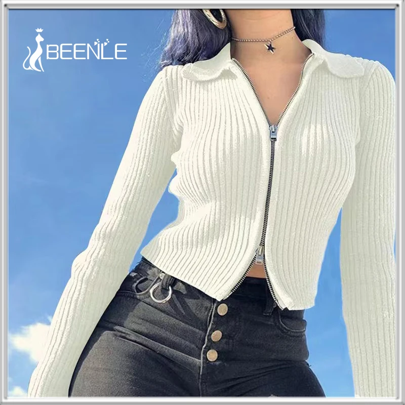 Женский однотонный полосатый кардиган BEENLE, вязаный облегающий свитер на молнии с длинным рукавом, весна-осень 2022