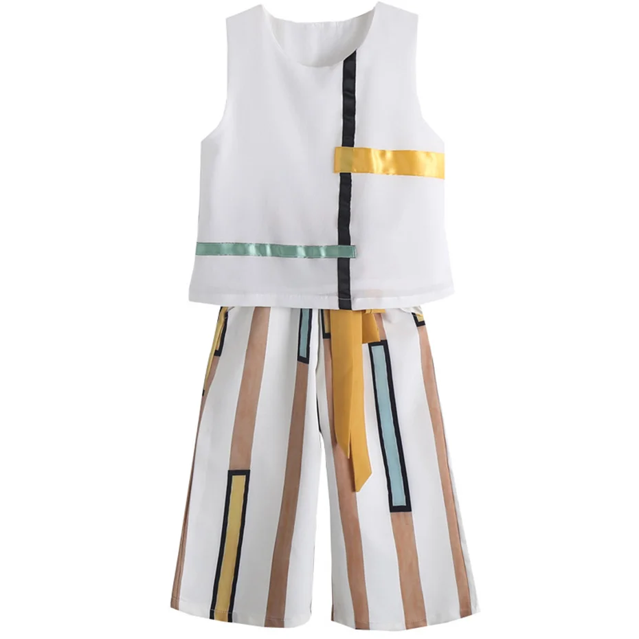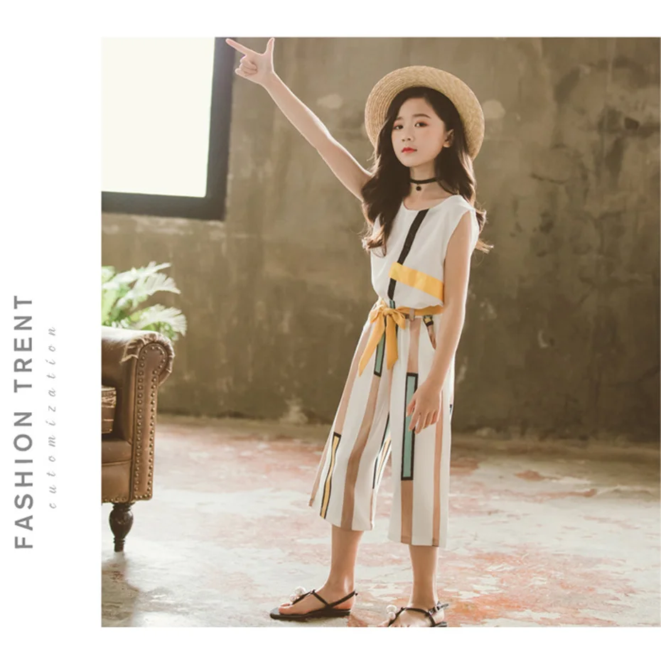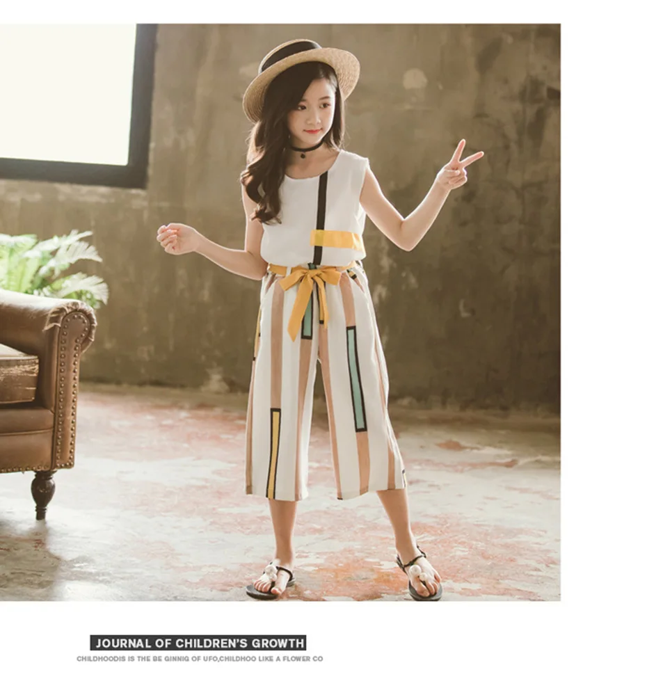 Летняя одежда для девочек, спортивные костюмы в полоску для девочек, жилет + короткая одежда для девочек-подростков, детская одежда