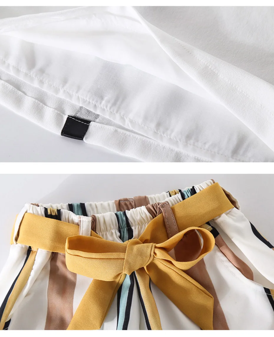 Комплект из 2 предметов, жилет и шорты в полоску для девочек-подрос...