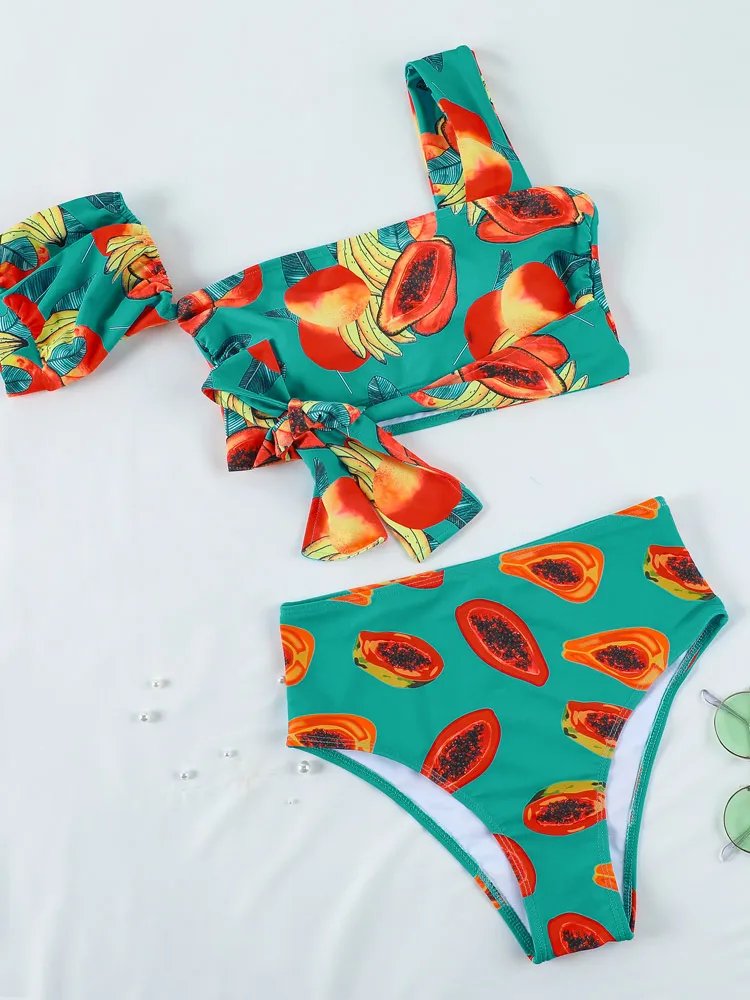 Женский купальный костюм с завышенной талией, бандажный купальник, женский купальный костюм, сексуальный бразильский комплект бикини из 2 предметов