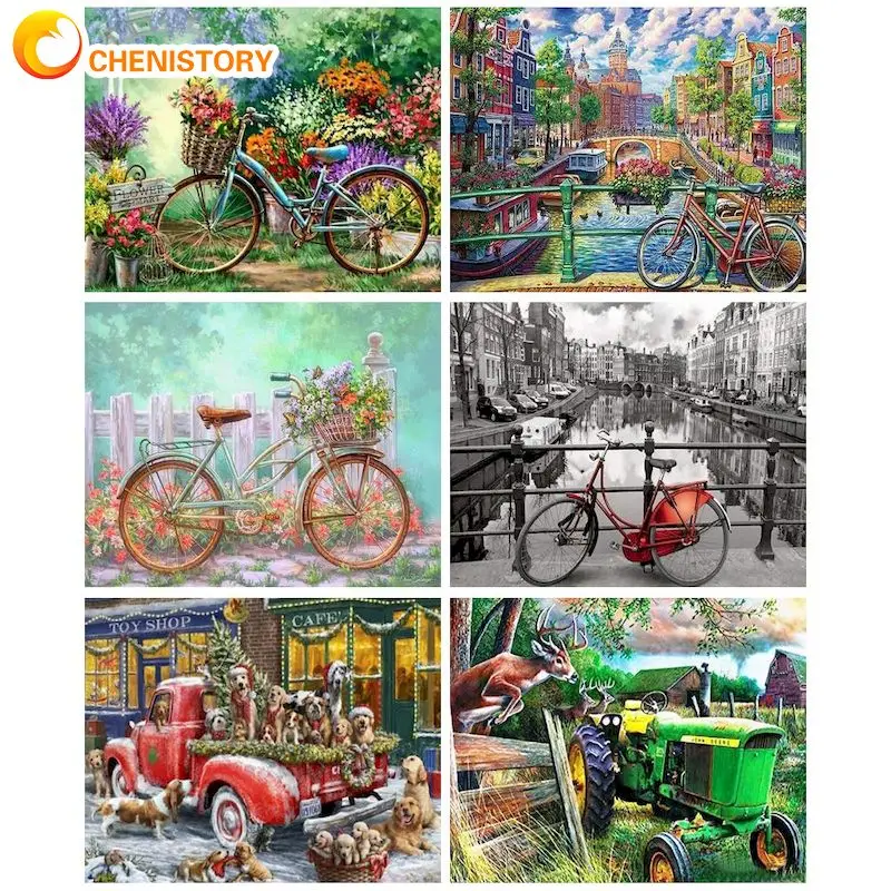 CHENISTORY полностью круглая Алмазная вышивка 5D DIY Стразы Вышивка для велосипеда и автомобиля украшение для дома подарок