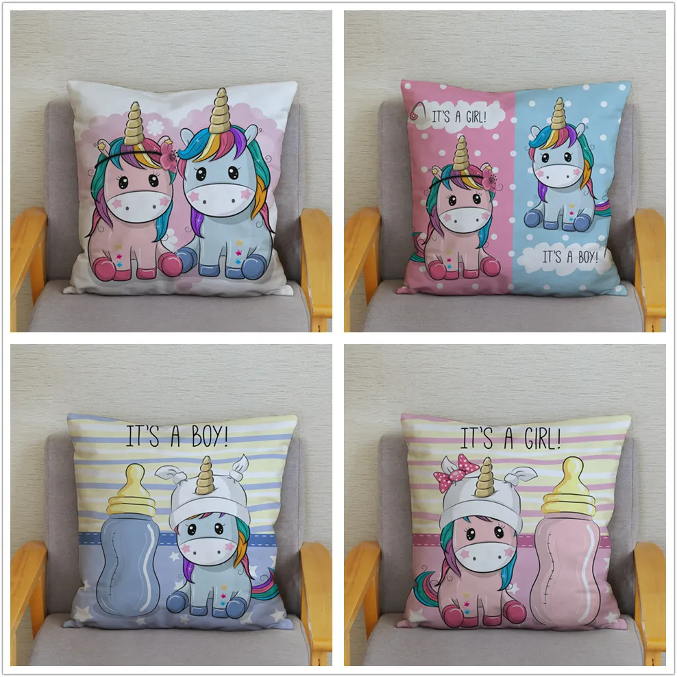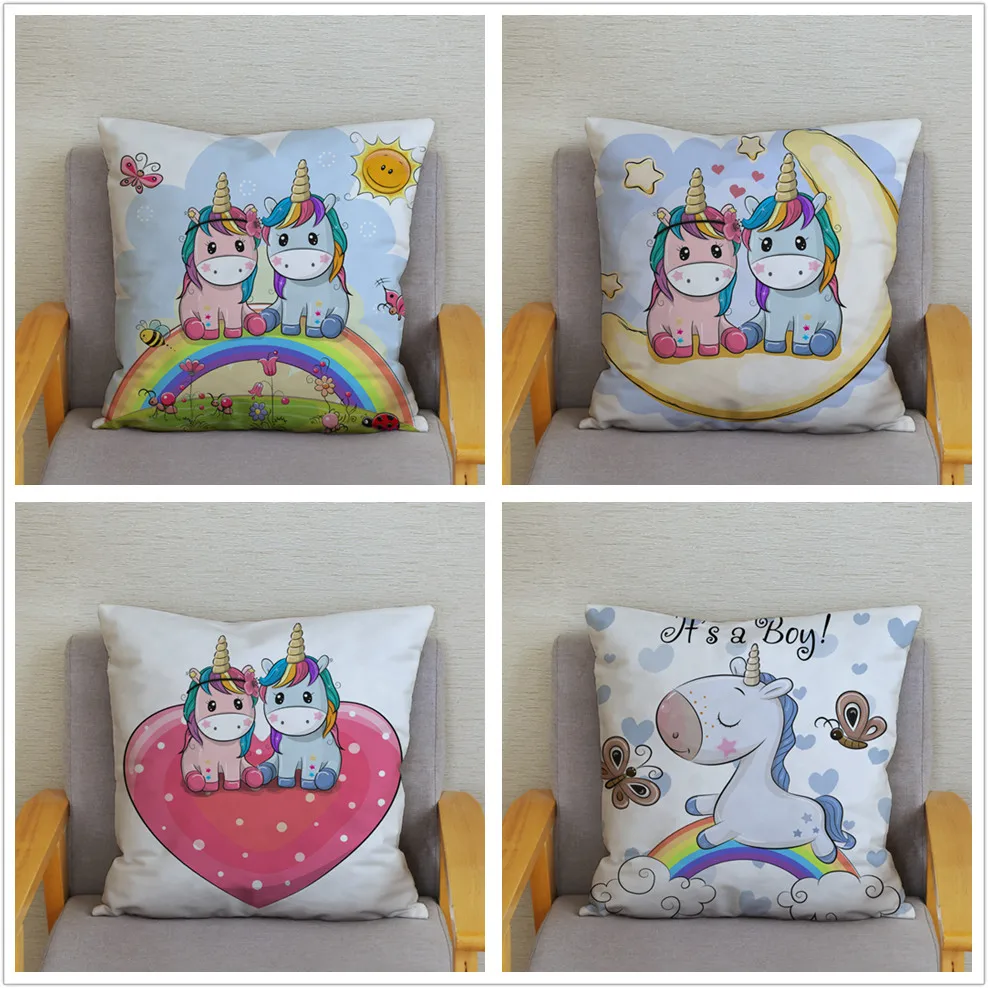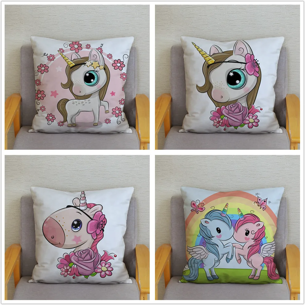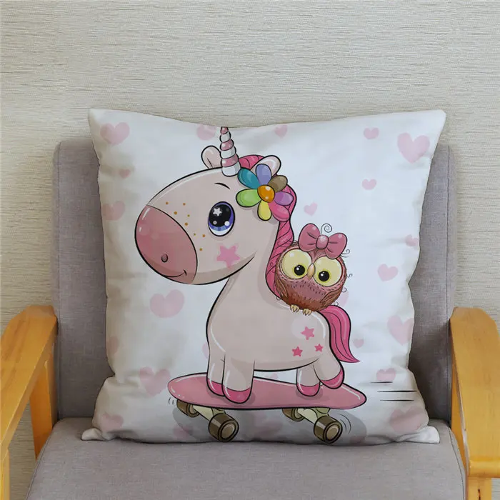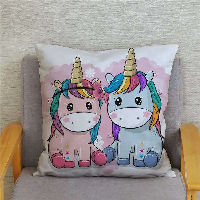 Супермягкая короткая плюшевая наволочка 45*45 см, милые наволочки с мультяшным принтом единорога, мягкие наволочки для подушек, искусственные