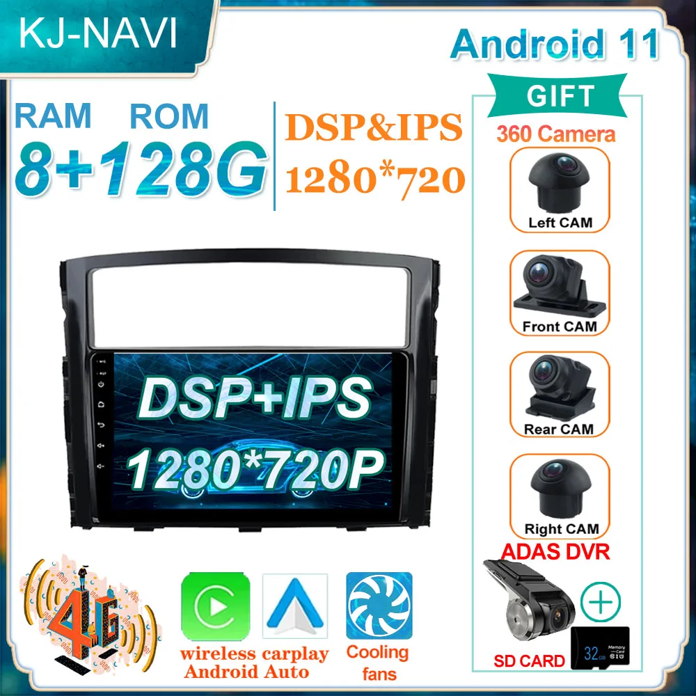 Carplay DSP IPS Android 11,0 автомобильное радио для Mitsubishi Pajero V97 2006-2014 Автомобильный плеер мультимедийный навигатор GPS Стерео навигация BT