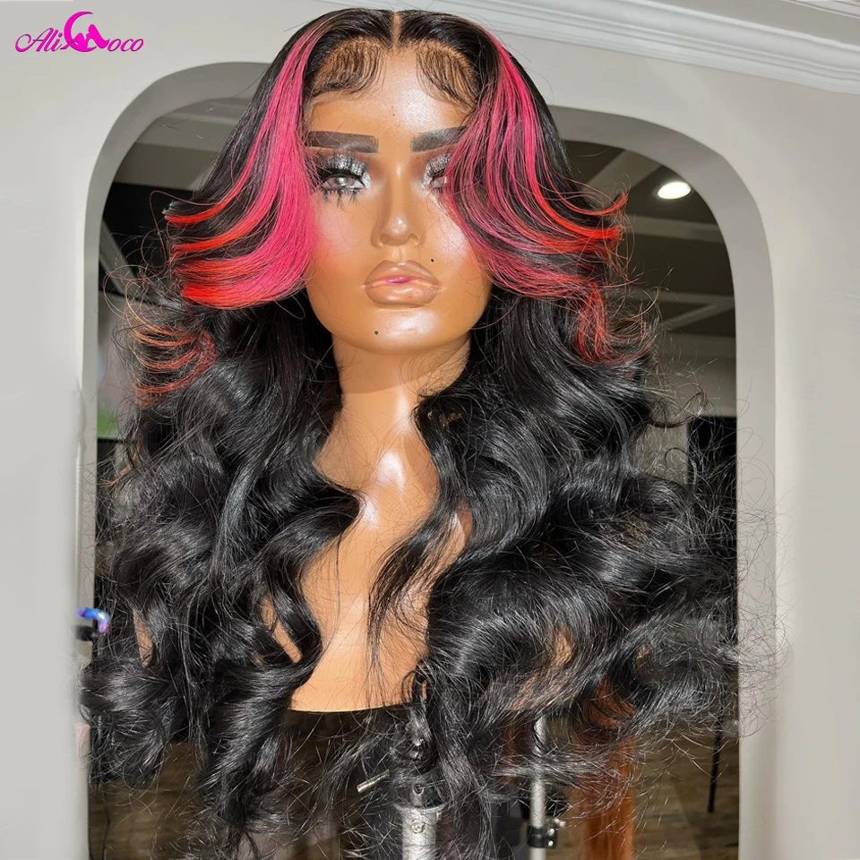 Pink Highlight Wig Human Hair Brazilian Virgin Body Wave 13x4 Lace Frontal Human Hair Wig For Women Transparent Lace Remy Hair