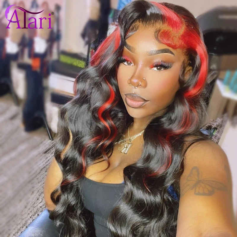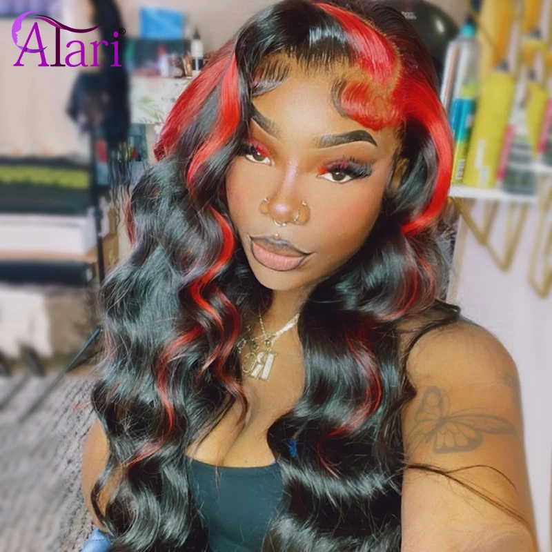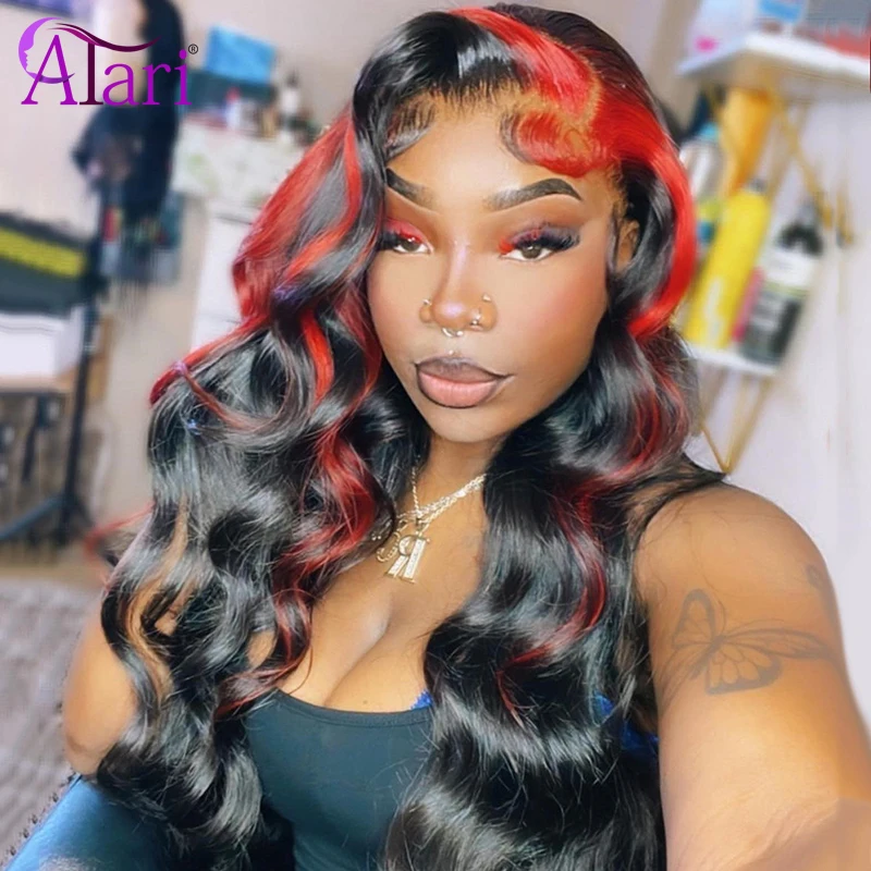 Выделите Омбре красный с черными парики человеческих волос для женщин 180% цветной волнистый кружевной передний парик HD 5x5 кружевной парик preplecked Atari