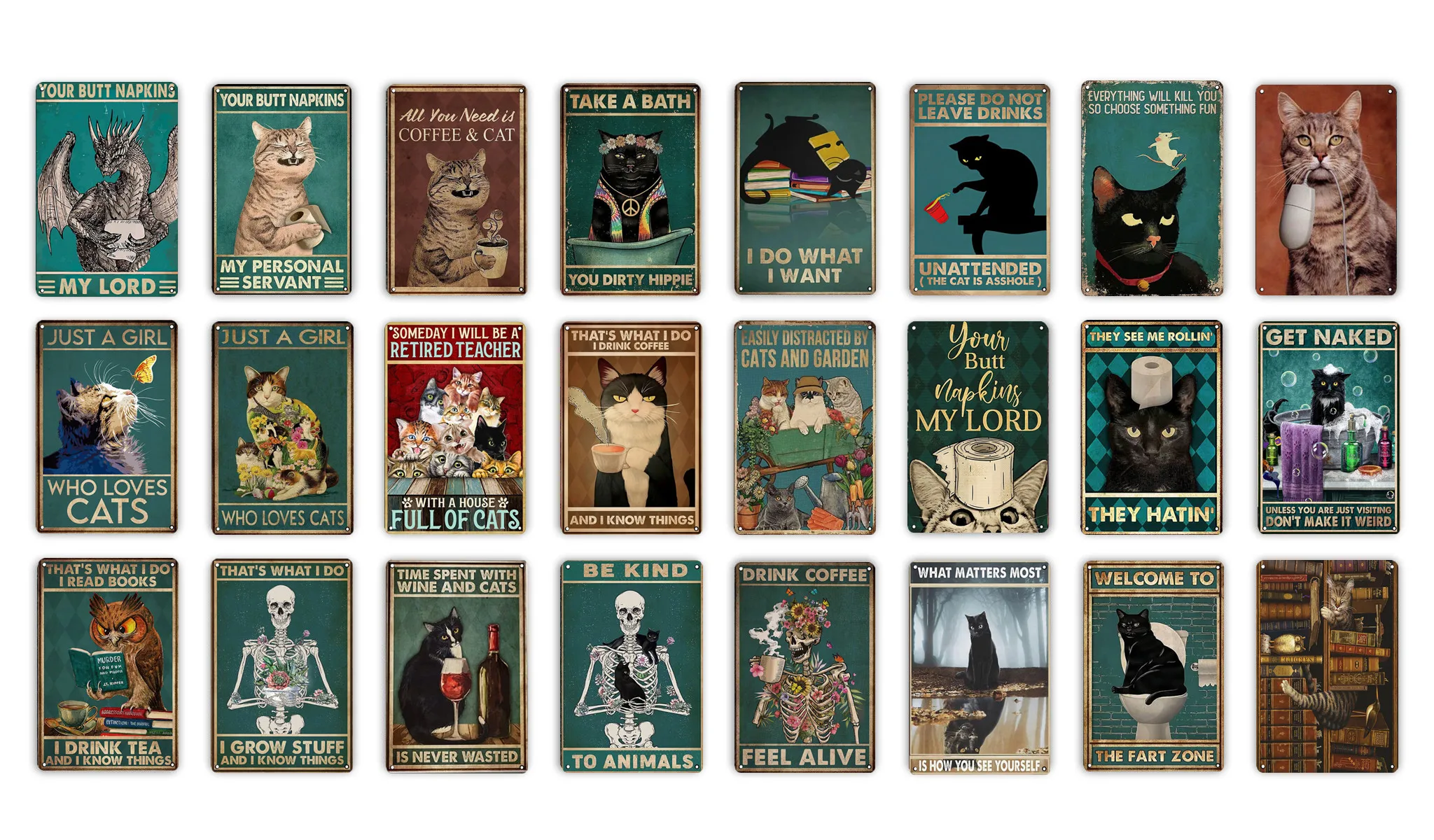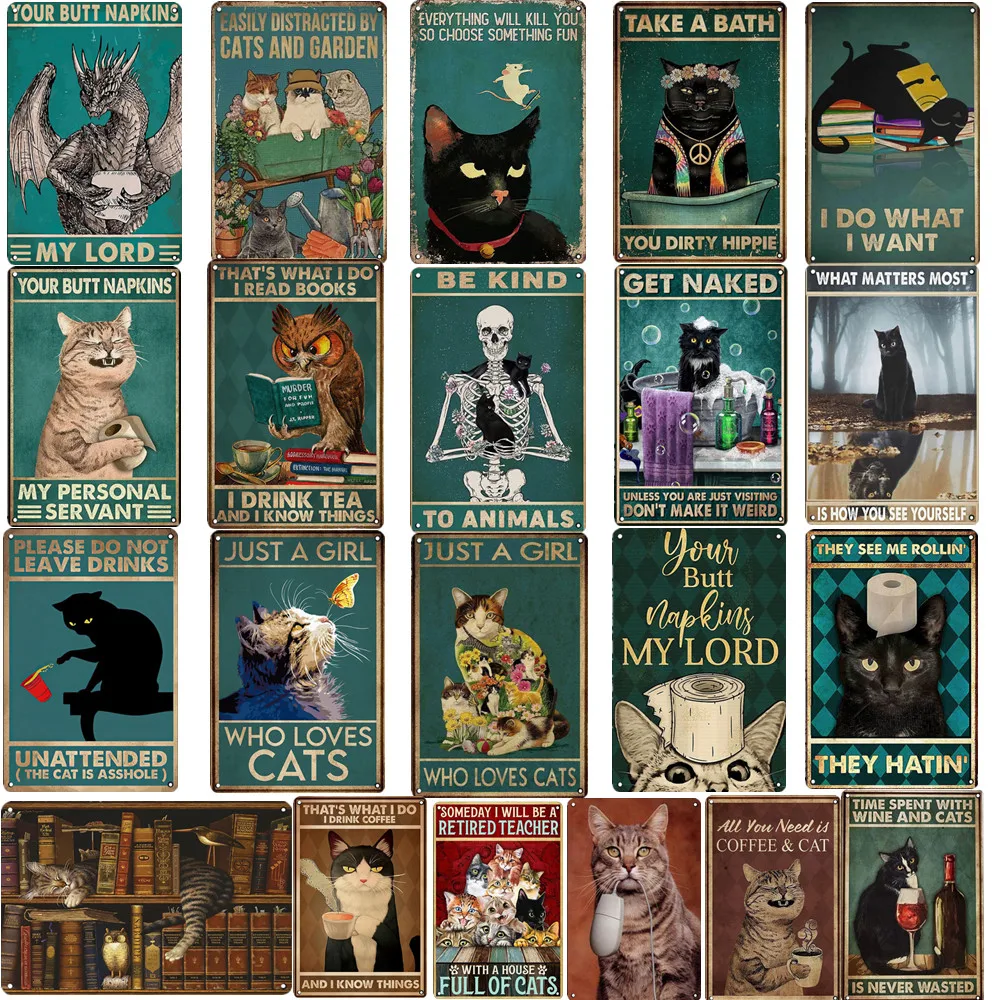 Металлический постер с изображением красивых цветов, настенное искусство, картина, табличка с черной кошкой, жестяная железная табличка, украшение для бара, клуба, гостиной, дома