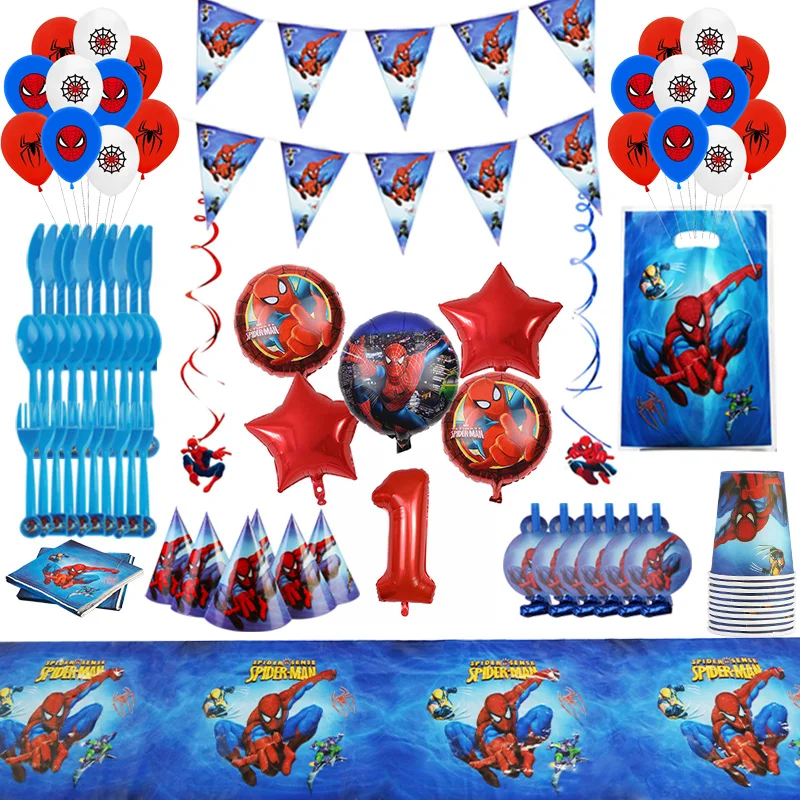 FeatureTheme: SpidermanMaterial: Paper or PlasticColor :as the picture showCondition:100% Brand new and high qualityOccasion : wedding decoration, festive festive supplies, home decoration, conference,Decoration, campus activities, party celebr1.tablecover: 1 pcs2.cups: 10 pcs3.plates: 10 pcs4.nakpins:20 pcs5.banner: 1 set (contain 10 small flags)6.card: 6 pcs7.blow out:6 pcs8.gift bags:10pcs9. straws: 10 pcs10.hat:6 pcs11.Gift bag:10 pcs12.mask:10 pcs13.Popcorn box:6 pcs14Candy box:6 pcs15.Flag:24 pcs16.Knife fork spoon:(Each)10 pcsNote:Due to hand measure, the size may have 1-3 cm errorDue to Different Monitor, the color may have a little chromatic aberration