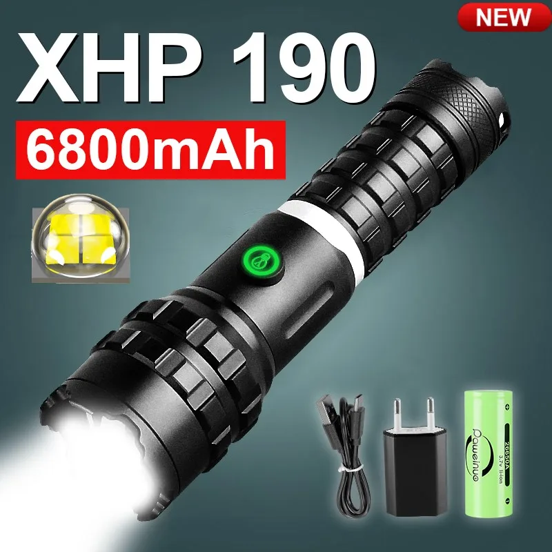 2022 новейший мощный светодиодный фонарик 18650 Usb перезаряжаемый XHP190 XHP50.2 высокомощный светодиодный фонарик вспышка водонепроницаемый ручной фонарь