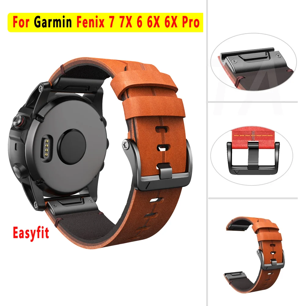Sport Quick Release Leather Watchband Wrist Strap For Garmin Fenix 7 7X 6X 6 Pro 5X 5 Plus 3HR 22 26mm EasyFit Wristband Correa