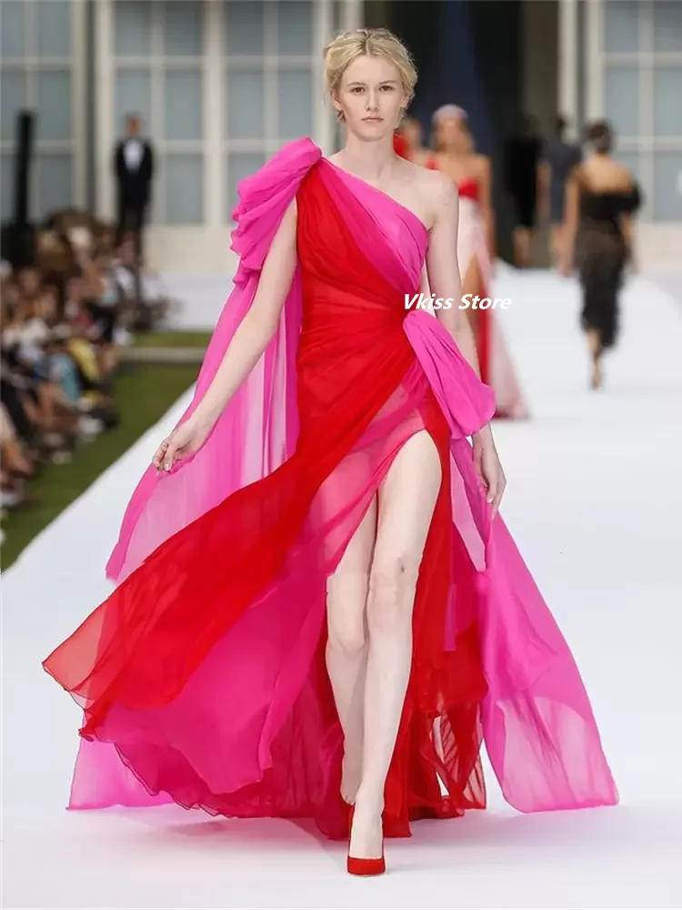 Женское вечернее платье на одно плечо, фиолетовое розовое платье с ...