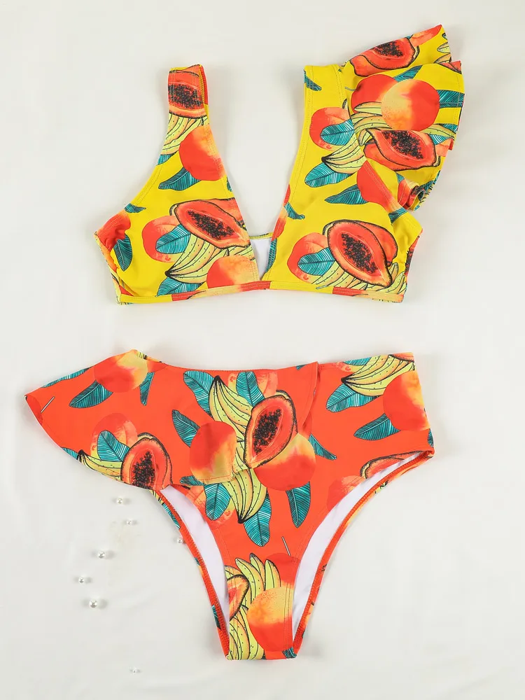 Купальник-бикини с оборками и глубоким V-образным вырезом, 2022, ку...