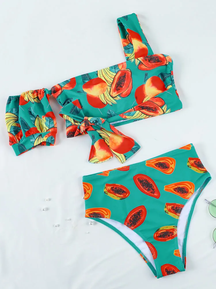 Женский купальный костюм с завышенной талией, бандажный купальник, ...