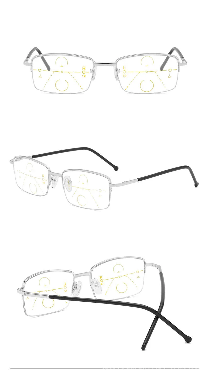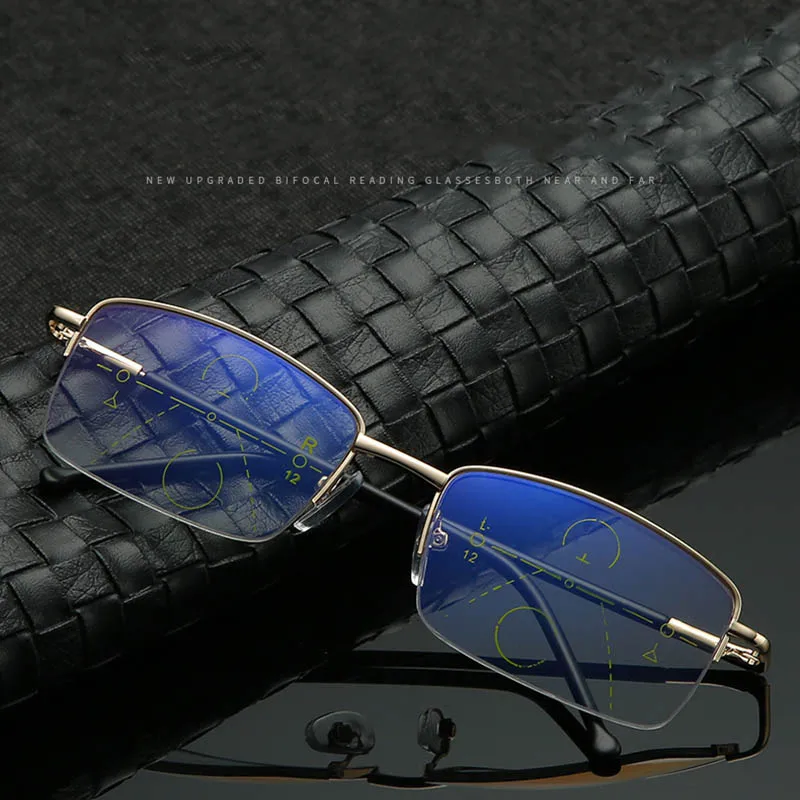 2022 металлические многофокальные очки для чтения, прогрессивные бифокальные анти-Синие лучи, защита от УФ-лучей, пресбиопические очки с полуоправой для мужчин, женщин, мужчин