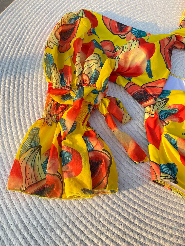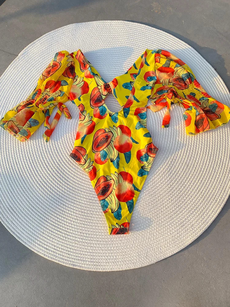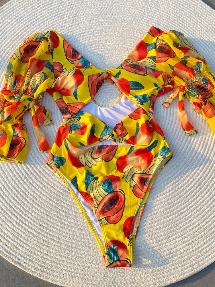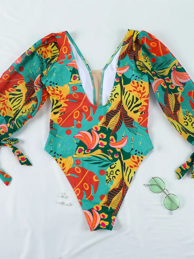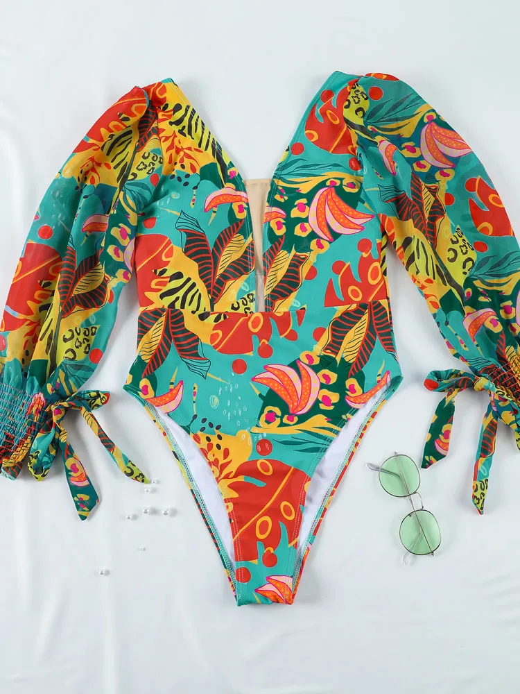 Слитный купальник с принтом, женский купальный костюм с длинными ру...