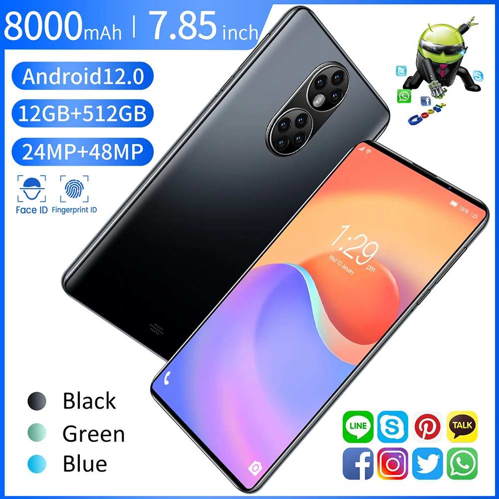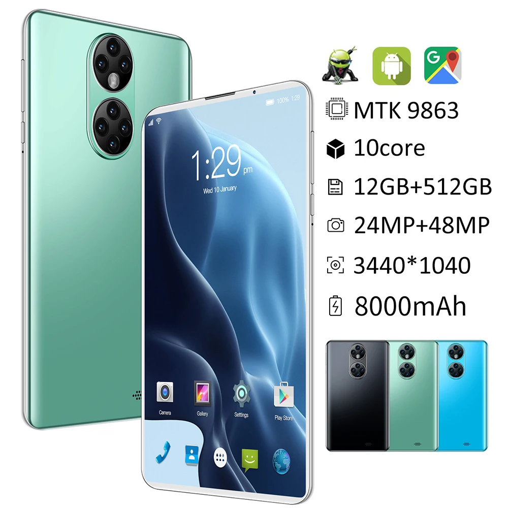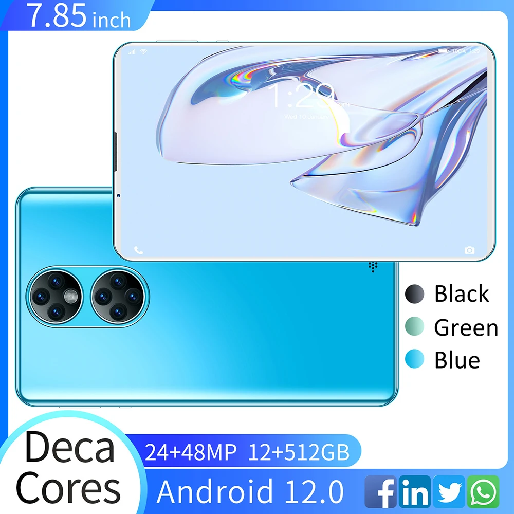 2021 latest P50 7Inch Tablet 12GB RAM 512GB ROM 5G LTE 24/48MP 3440X1040 HD IPS Screen 10 Core Android 12 Smart Tablets Pc