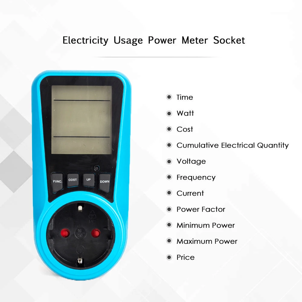 Цифровой ваттметр, измеритель тока, вольтметр с вилкой Стандарта ЕСГермании, тестер мощности и энергии, ваттметр, анализатор розетки переменного тока 230 В, 50 Гц