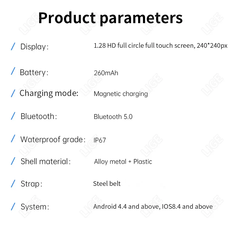 Смарт-часы LIGE мужские с поддержкой Bluetooth, тонометром и будиль...
