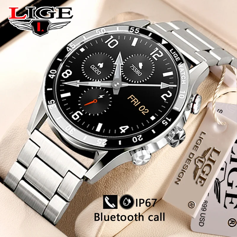 Новые мужские Смарт-часы LIGE с Bluetooth, часы с вызовом, водонепр...