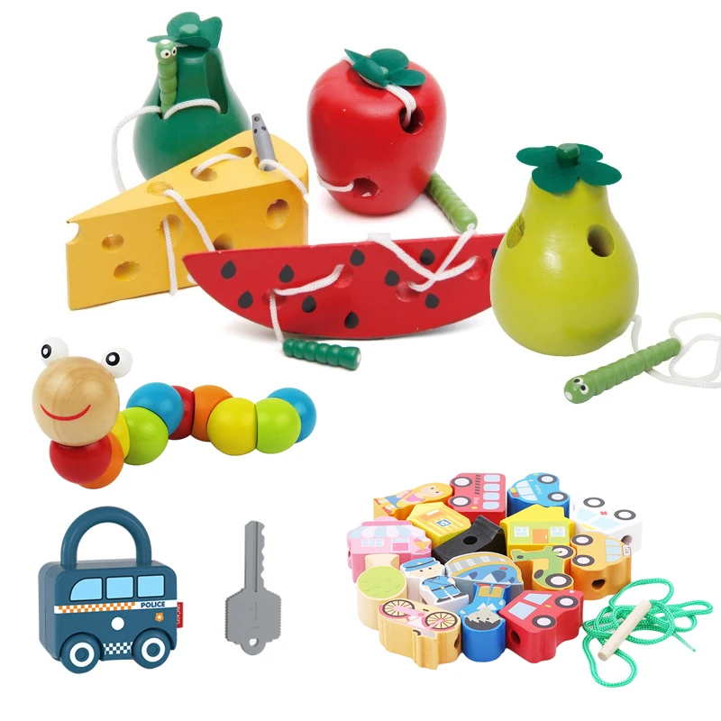 Деревянные бусины-нитки, развивающие игрушки, сортировочные штабели...