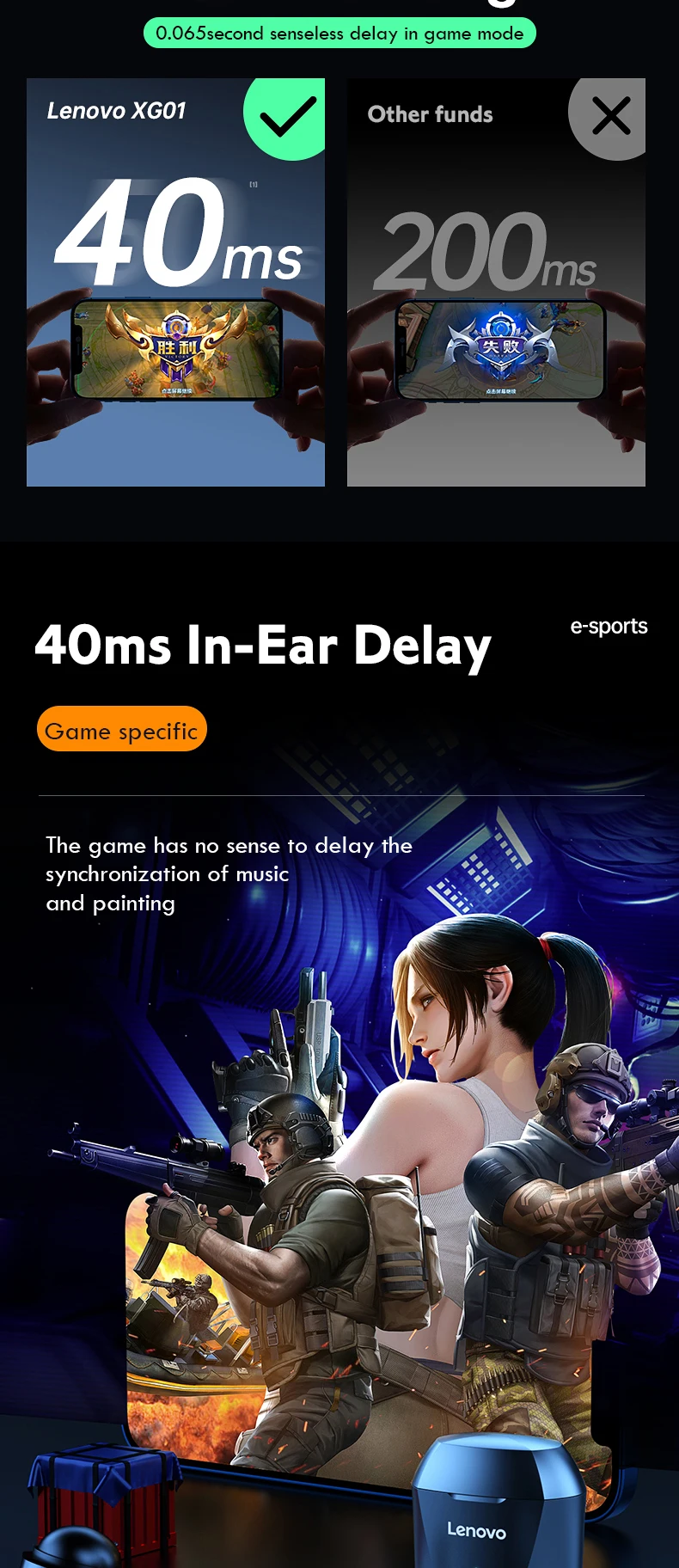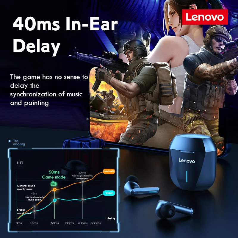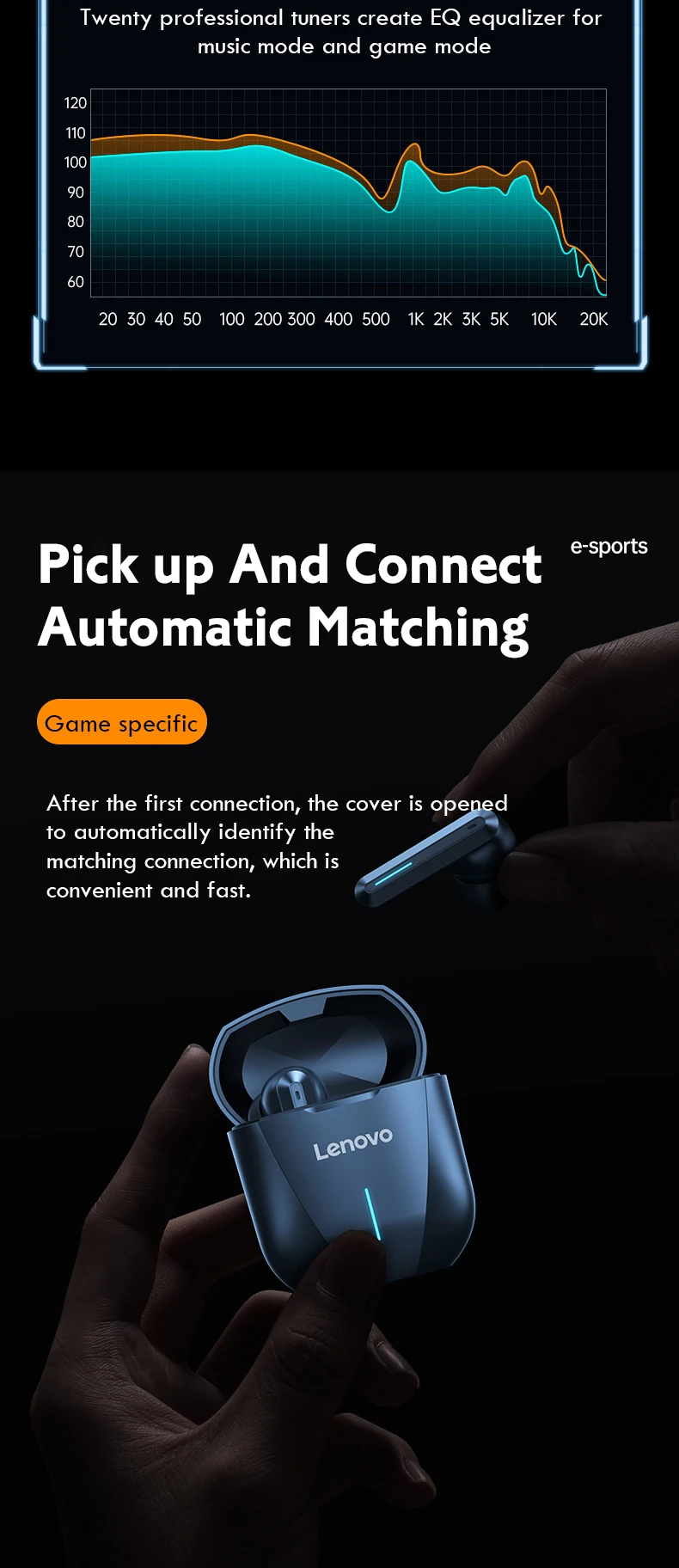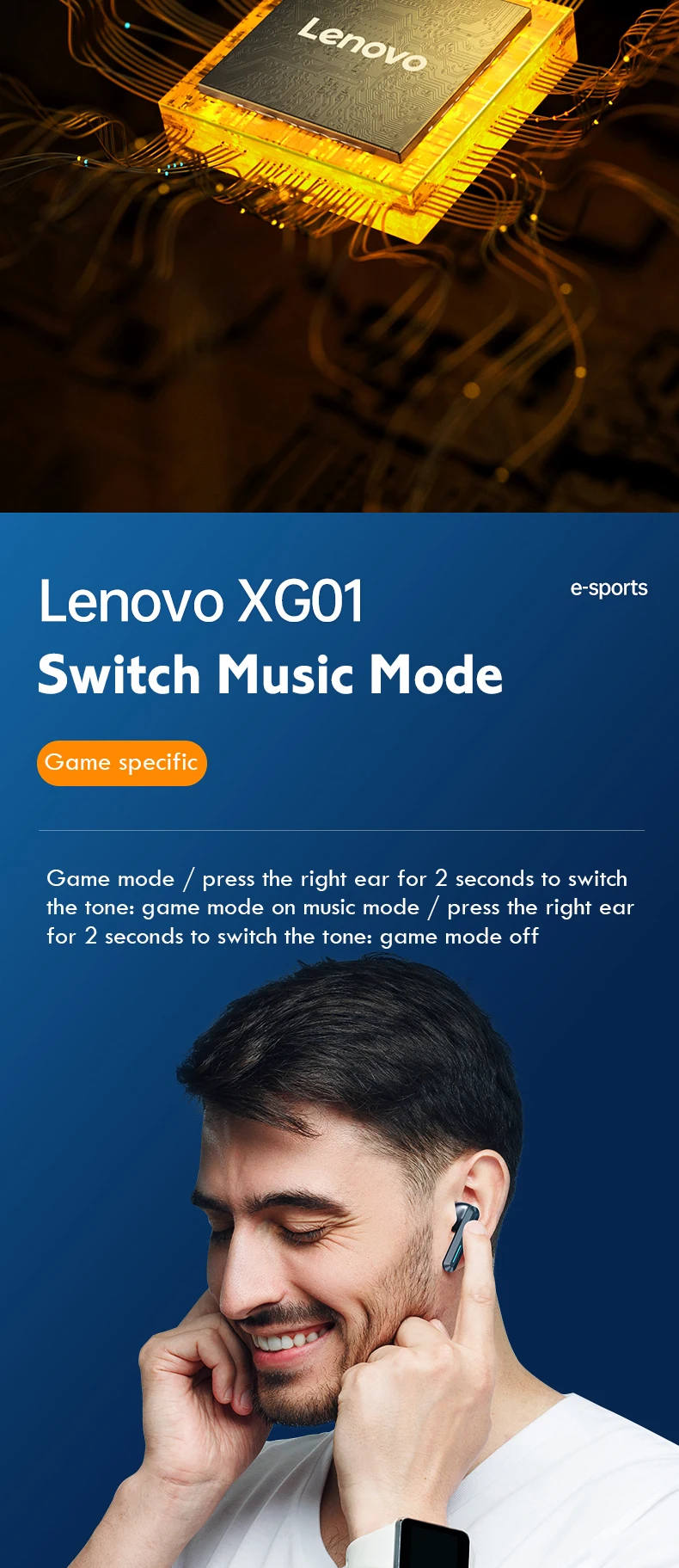 Lenovo XG01 Gaming Wireless Headphones TWS Bluetooth Earphones Game Headsets 9D HIFI Stereo Earbuds Low-latency with Mic Headset
