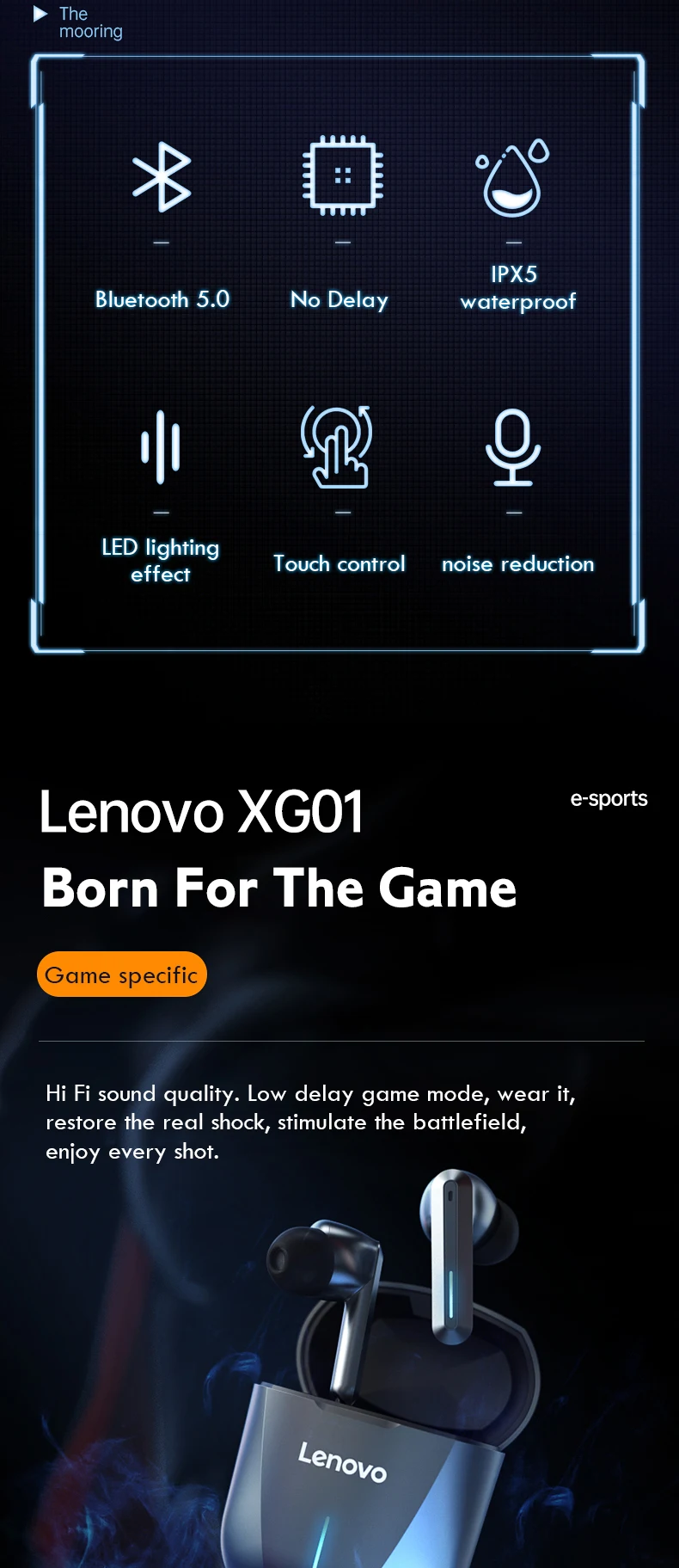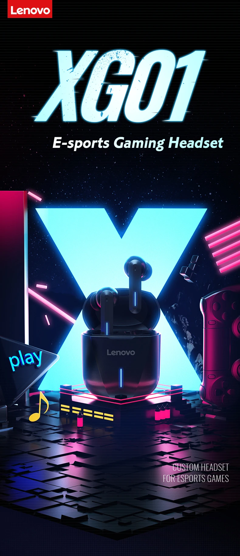 Игровые беспроводные наушники Lenovo XG01, TWS наушники с Bluetooth, игровая гарнитура 9D Hi-Fi, стереонаушники с низкой задержкой и микрофоном, гарнитура