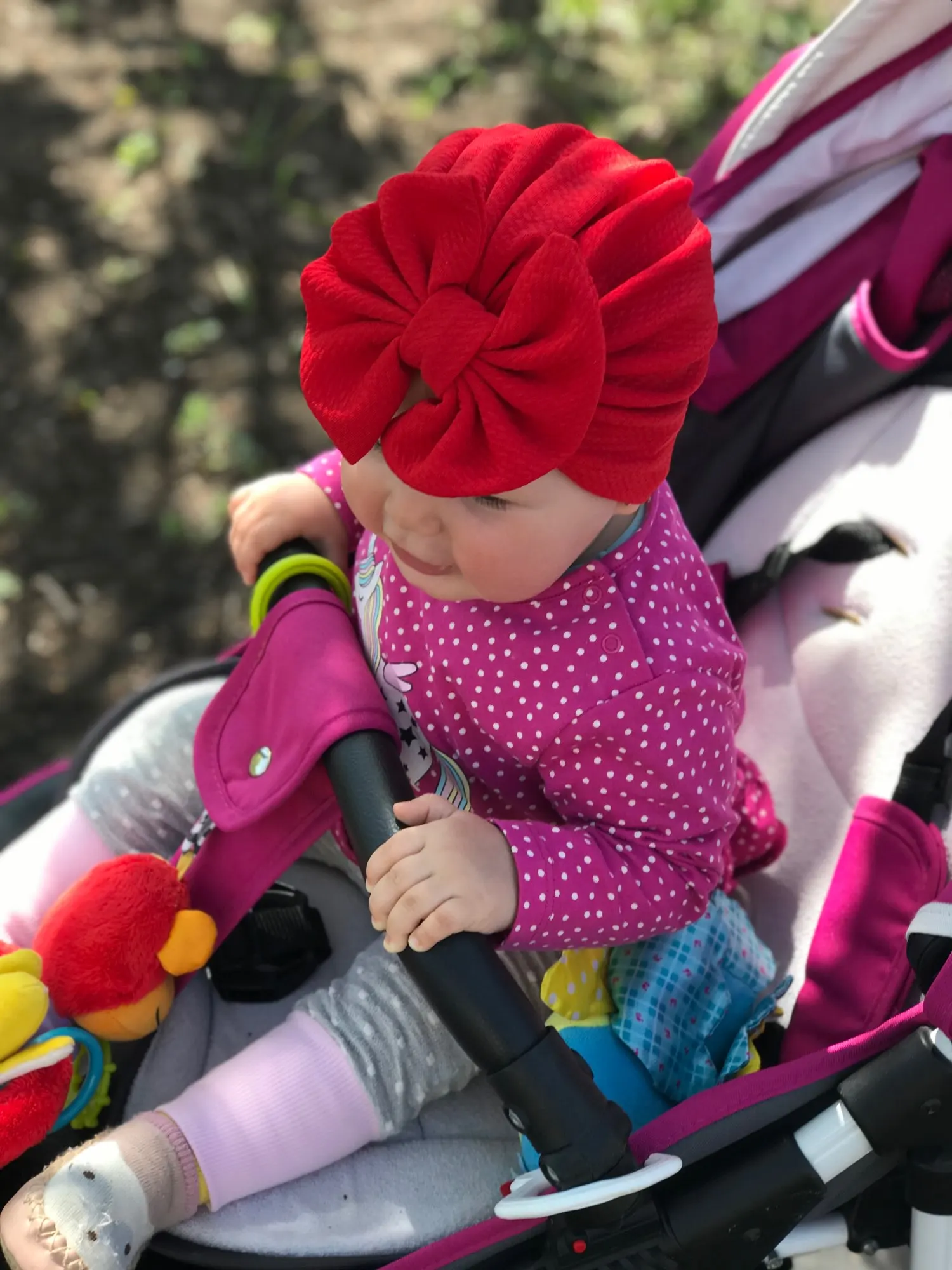 Шапка-тюрбан детская, однотонная, для девочек, с большим бантом, ре...