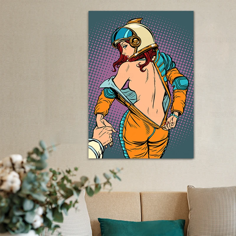 Сексуальное поп-арт следуй за мной, астронавт, женщина, комикс, мультфильм, искусство на стене, картины для гостиной, домашний декор